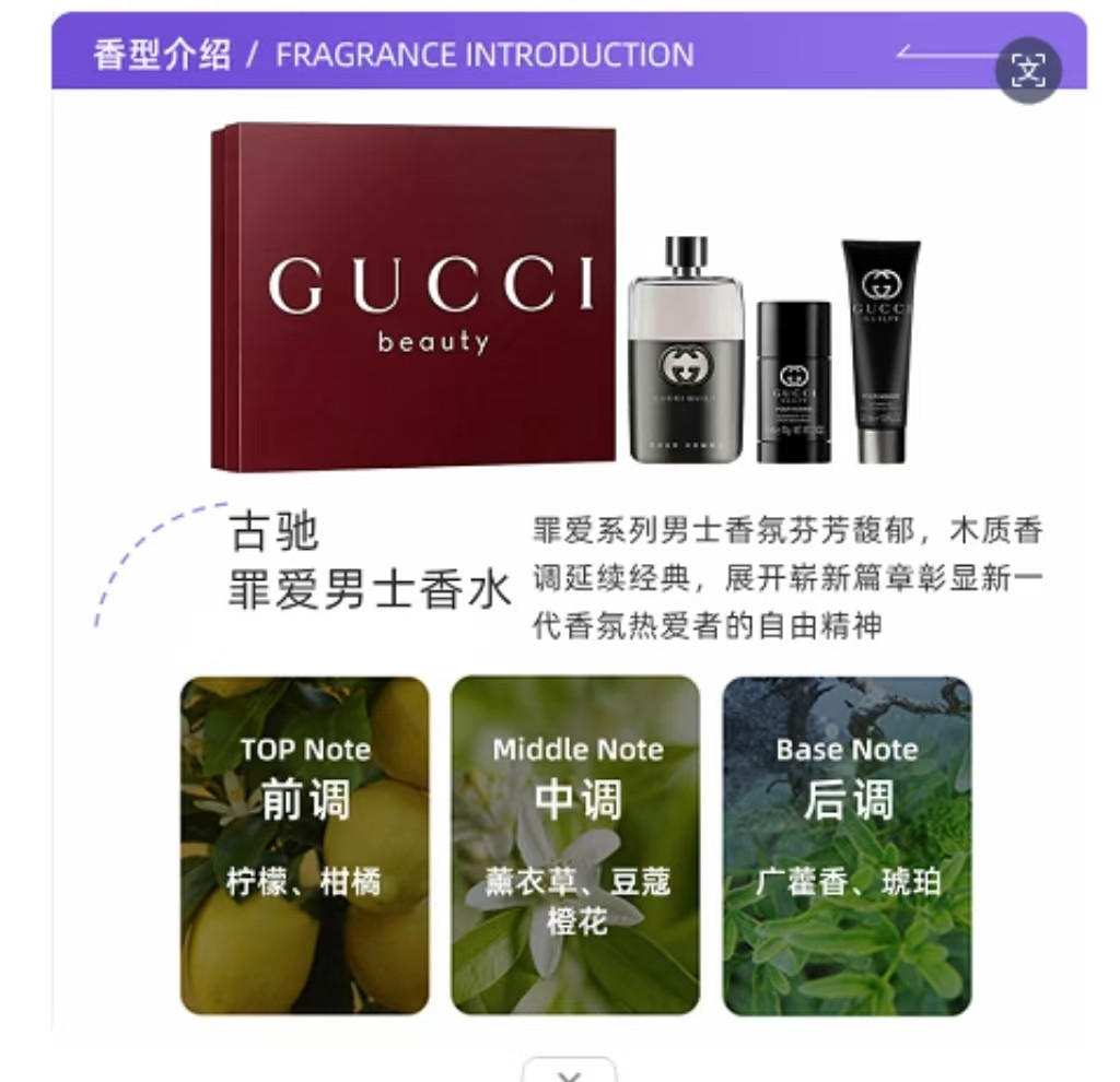 【自营】Gucci/古驰罪爱男士淡香水套盒雪松木质香调