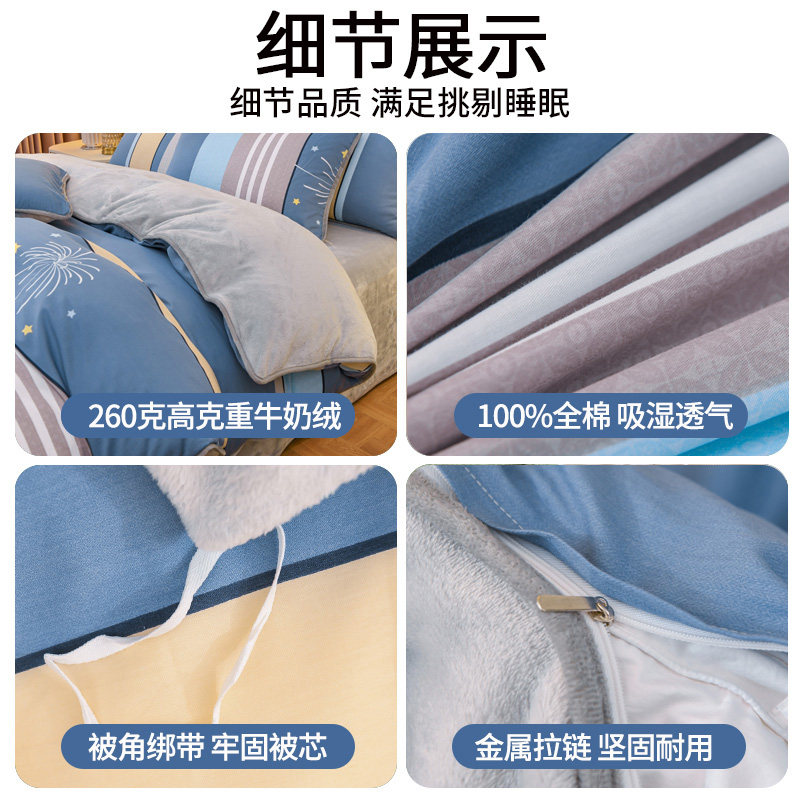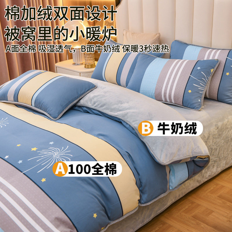 官方正品棉加绒四件套牛奶绒