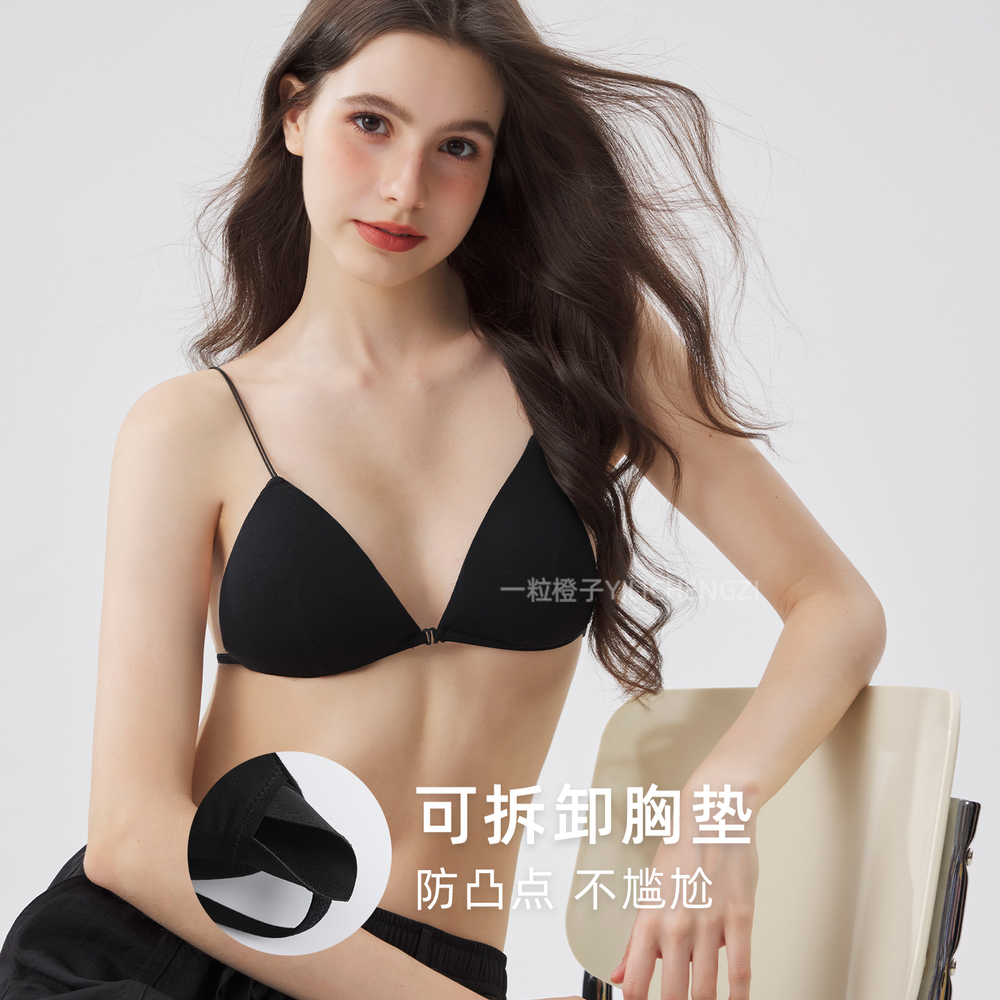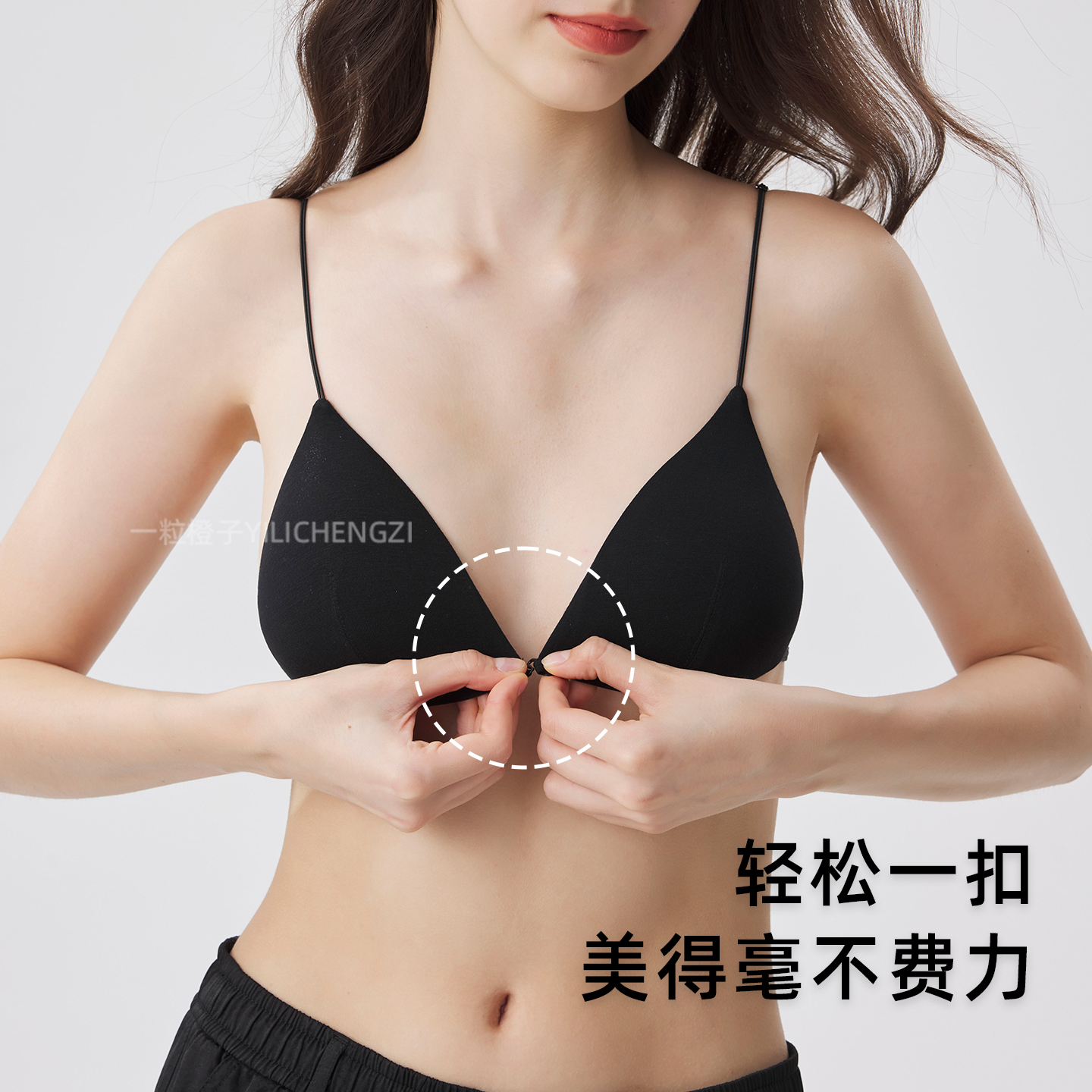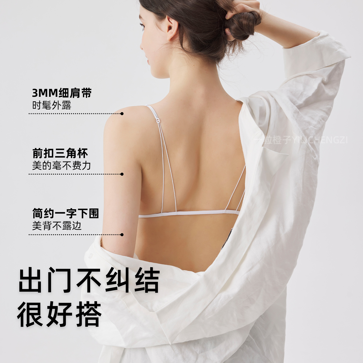 大露背前扣法式三角杯细肩带美背