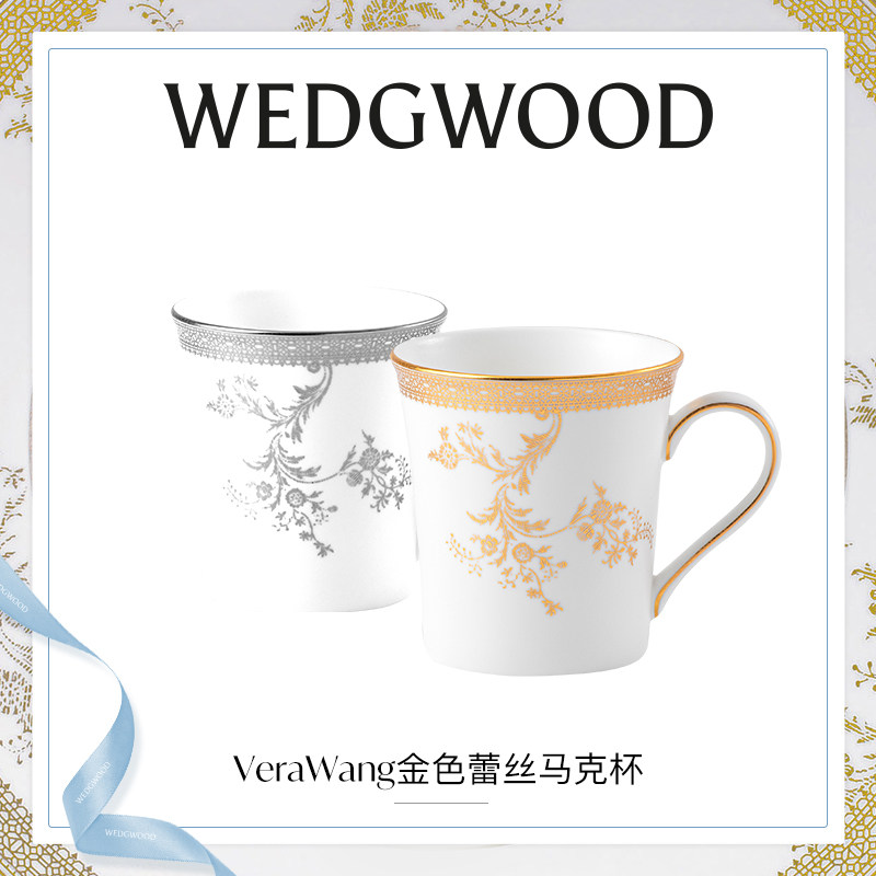 WEDGWOOD威基伍德VeraWang金色蕾丝骨瓷马克杯咖啡杯水杯生日礼物