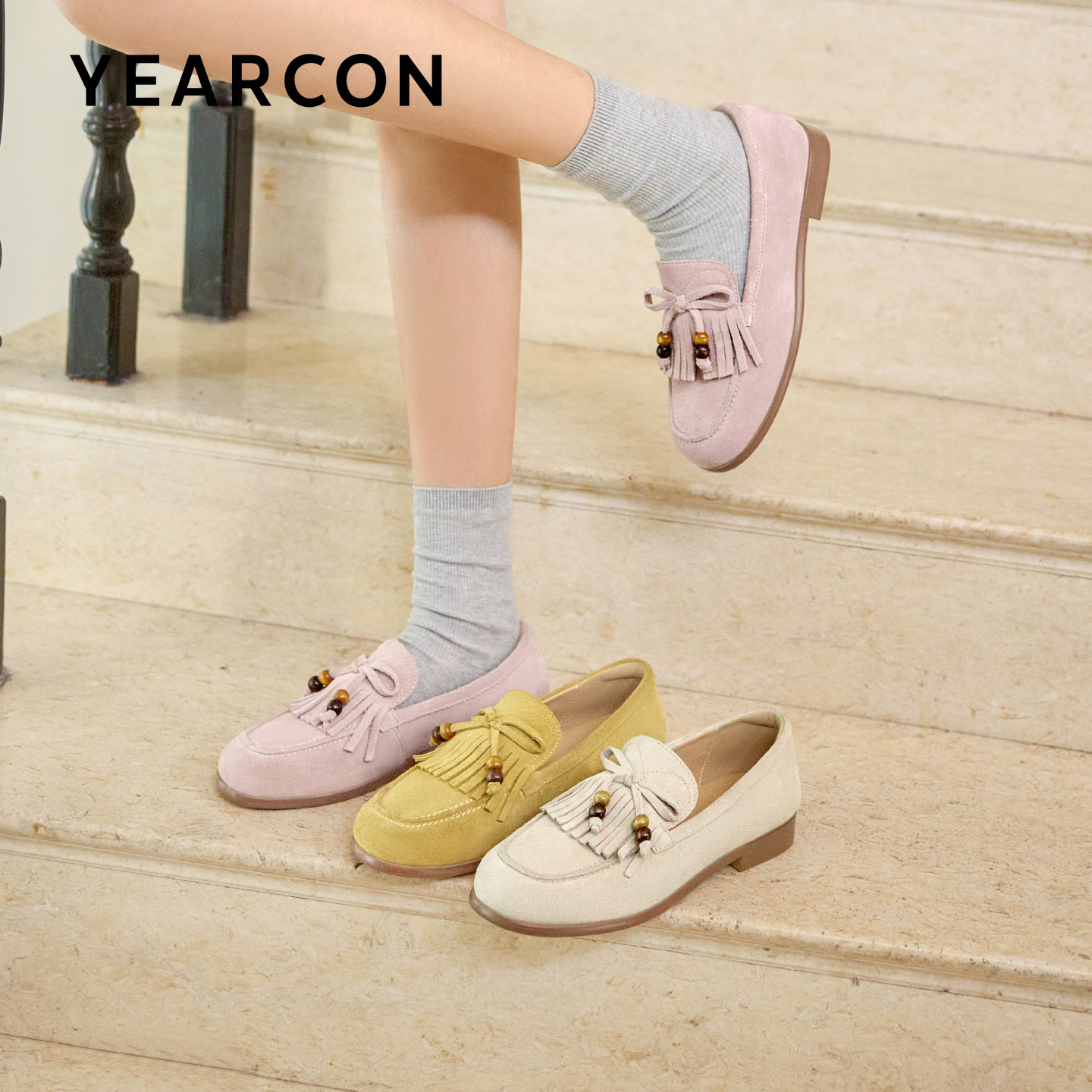 意尔康老钱风乐福鞋女2026春新款一脚蹬真皮勃肯鞋平底袋鼠小皮鞋