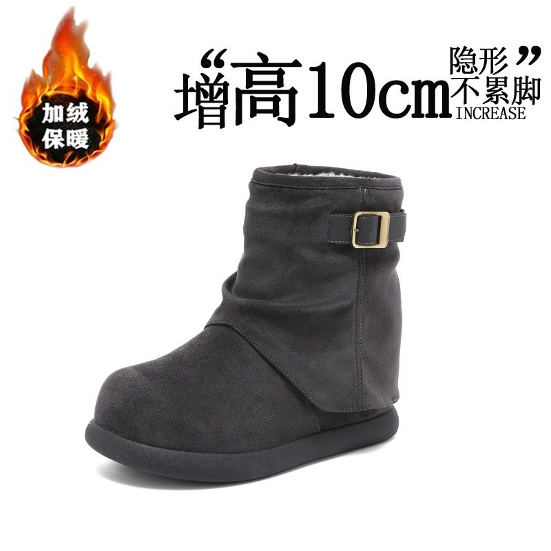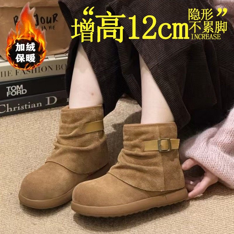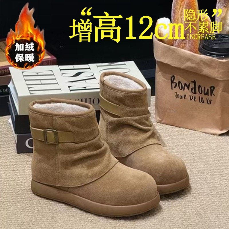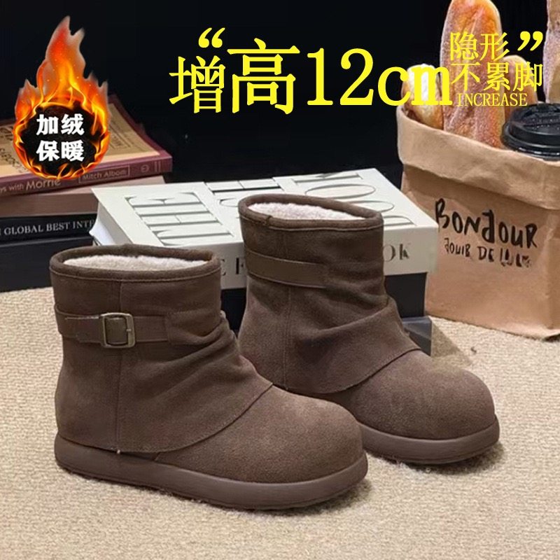 欧货真皮金属搭扣大头加厚雪地棉靴短靴12cm内增高勃肯鞋面包鞋女