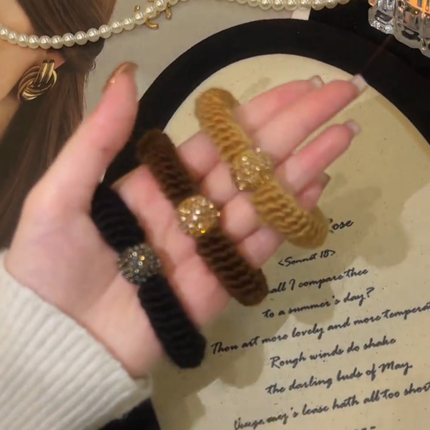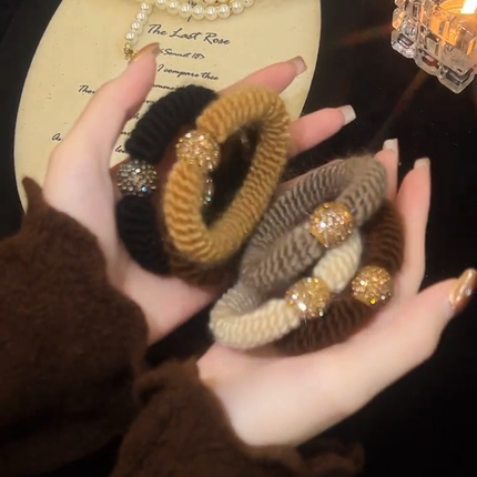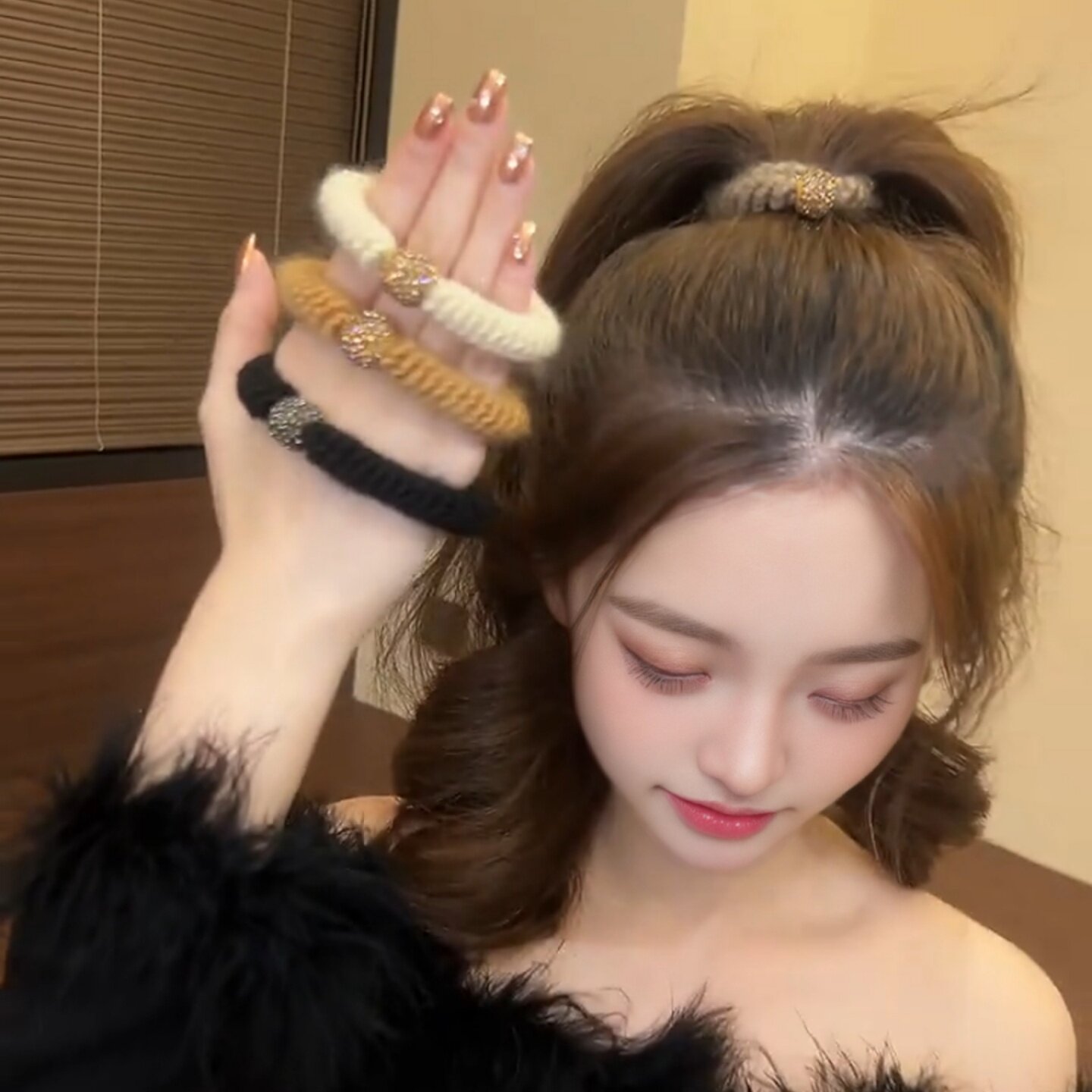 美拉德高弹力加粗水钻发绳女秋冬毛线小肠发圈扎高马尾丸子头头饰