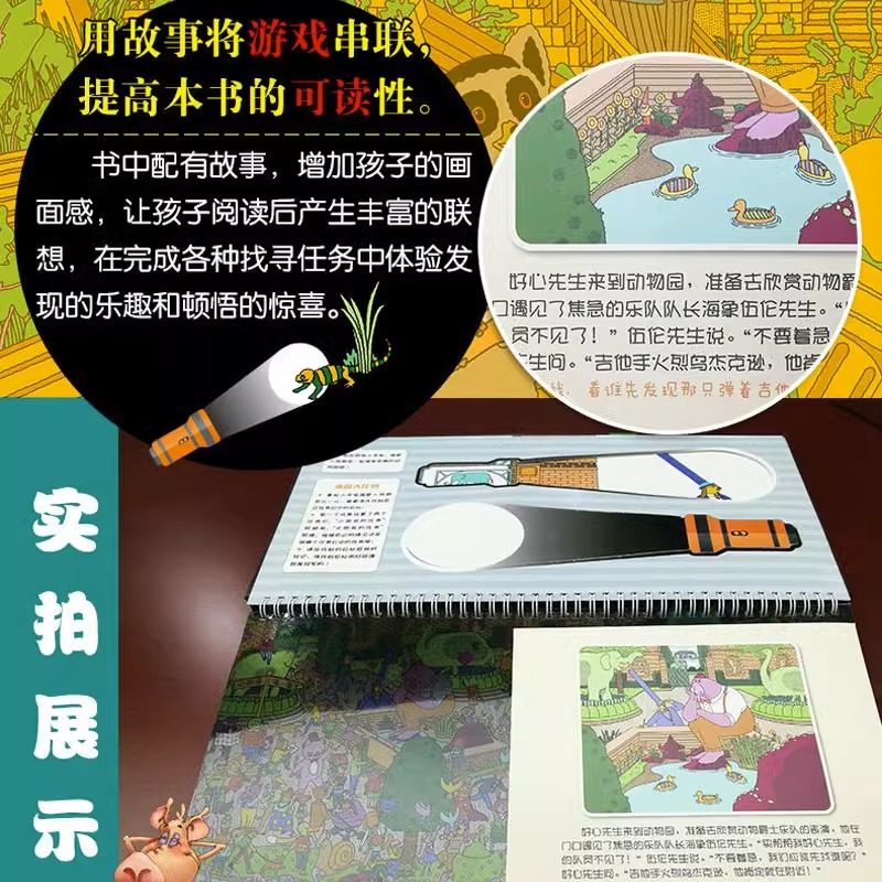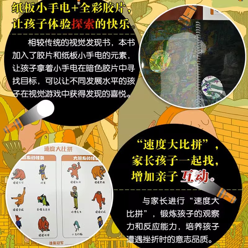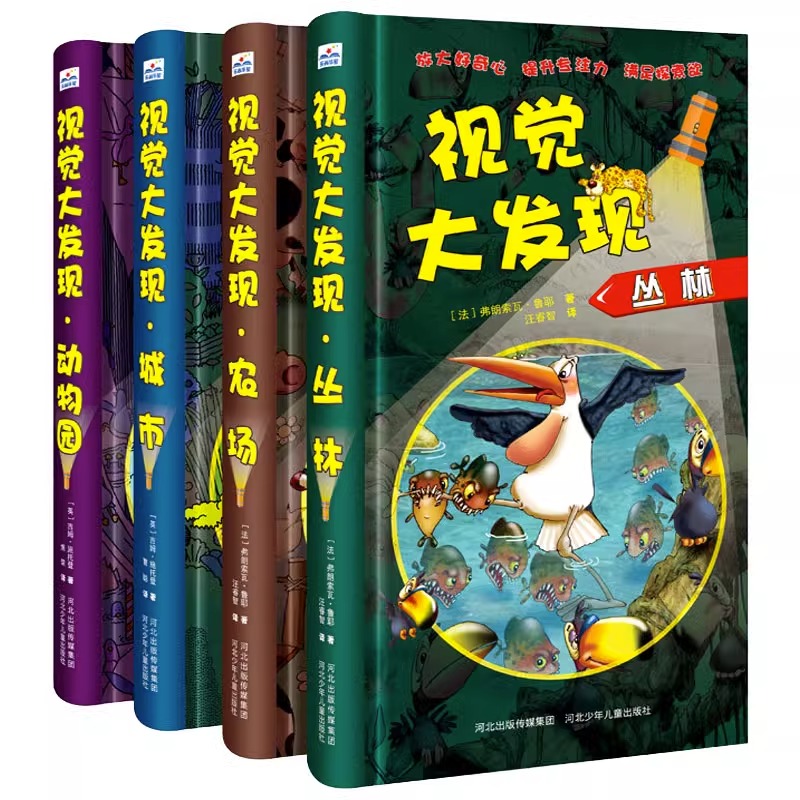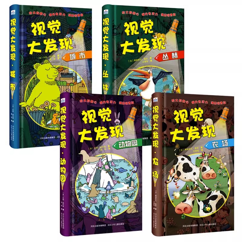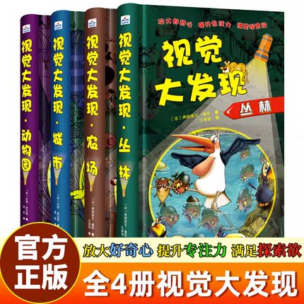 全套4册视觉大发现 小手电大探秘系列 寻找隐藏的图画3-6-8-12岁儿童找不同捉迷藏城市/丛林/动物园/农场专注力训练益智游戏书籍