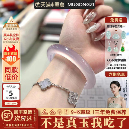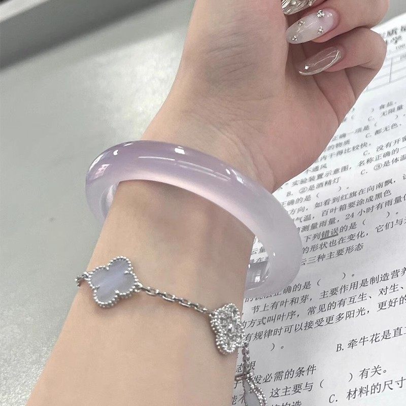 "桃之夭夭"高冰透玉髓紫罗兰玛瑙玉手镯子女饰品飘淡紫翡翠平替