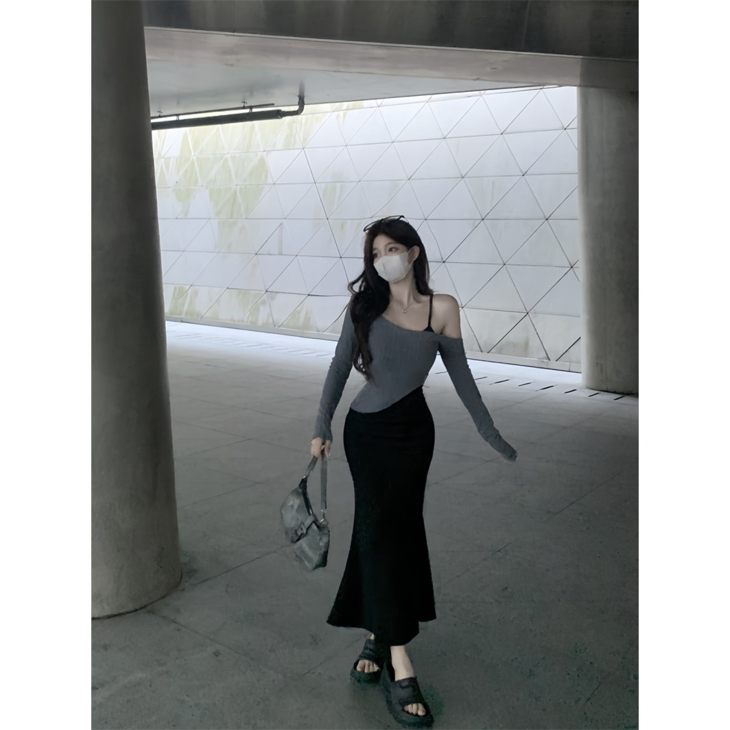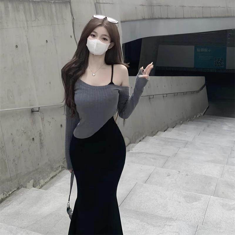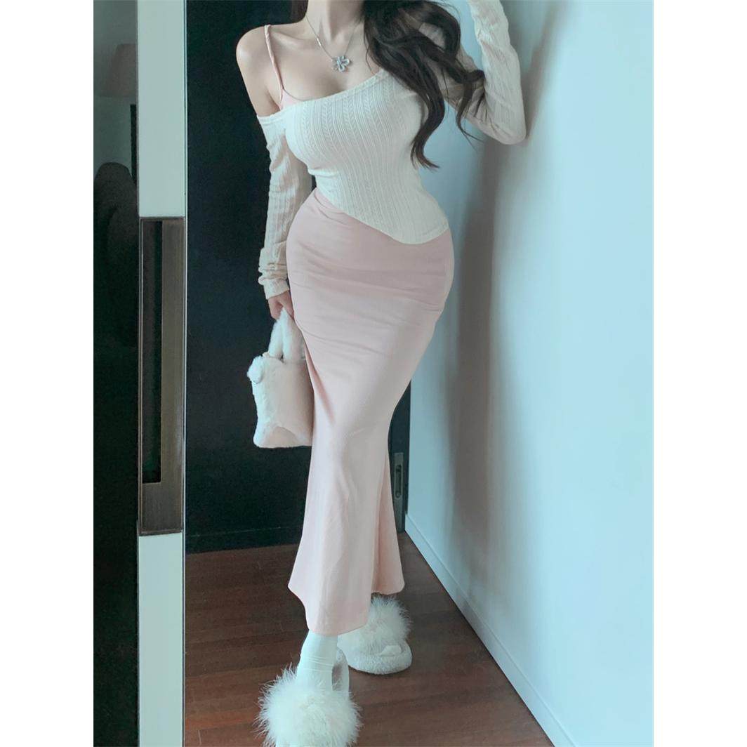 风情万种纯欲性感吊带连衣裙套装裙女秋季辣妹修身包臀鱼尾长裙子