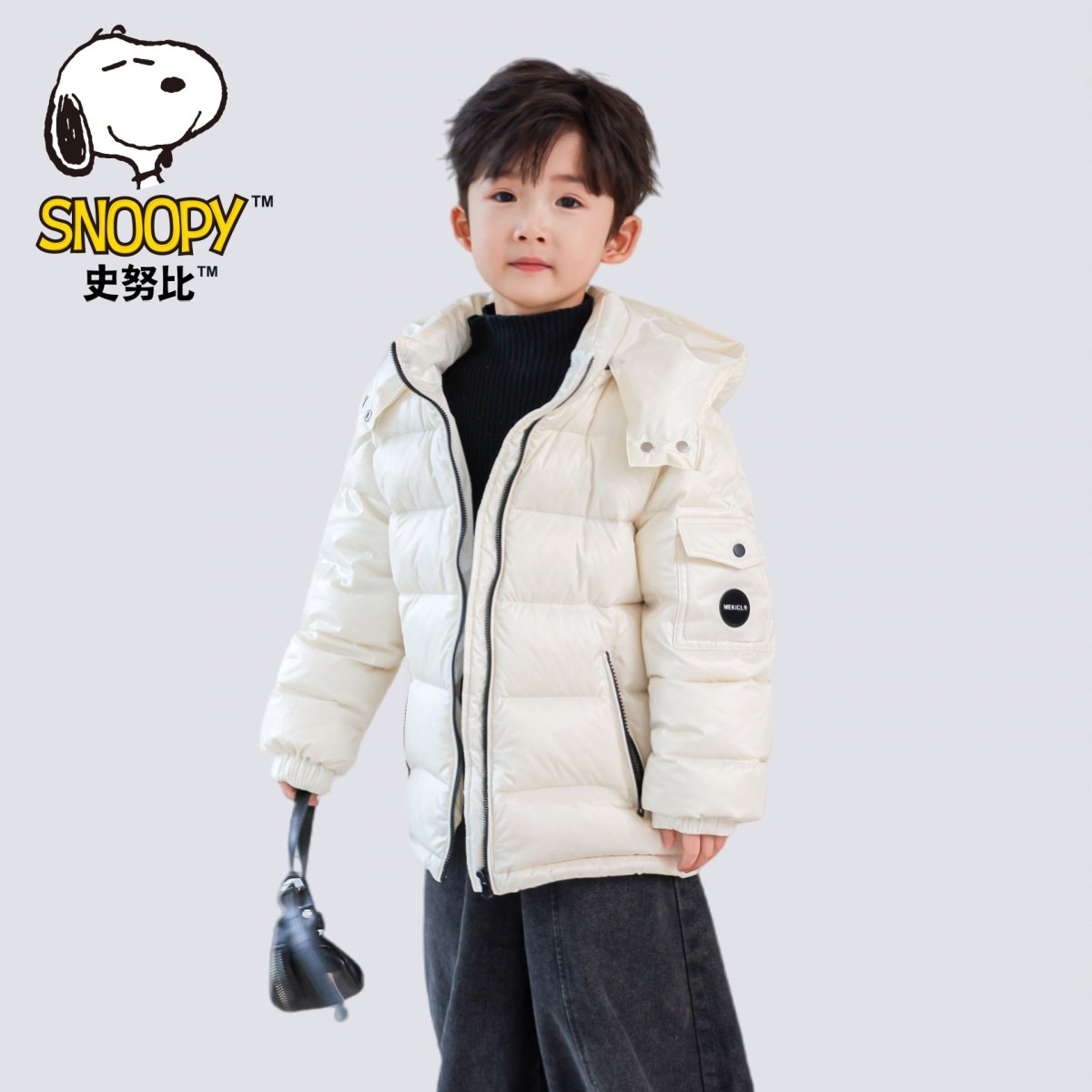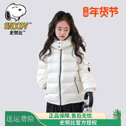 史努比儿童装羽绒服男女童冬装外套上衣厚款90白鸭绒短款中大童潮