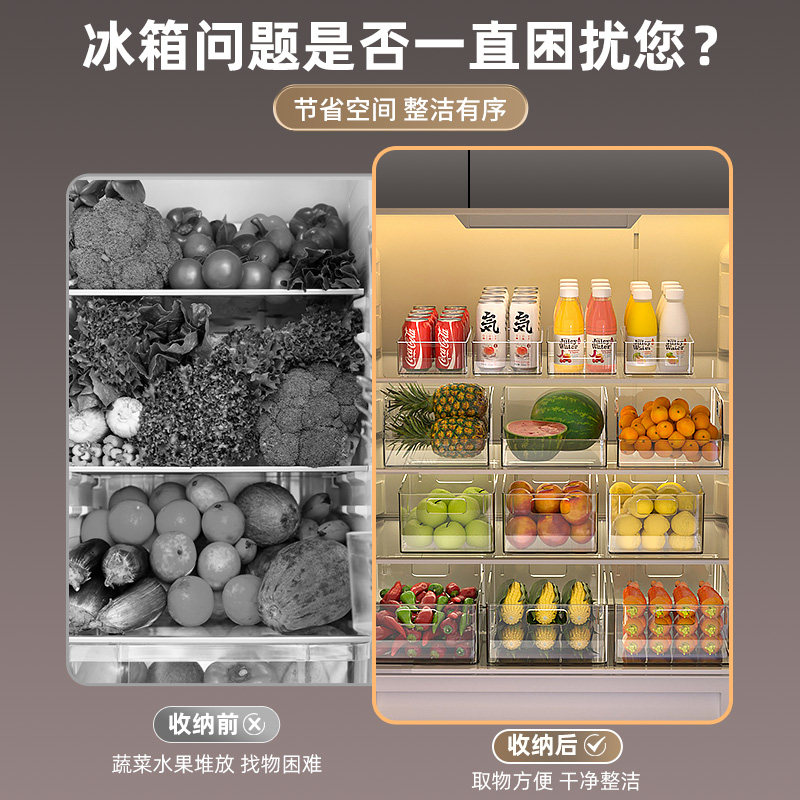 冰箱水果收纳盒透明厨房蔬菜饮料零食整理收纳筐鸡蛋冷藏储物盒