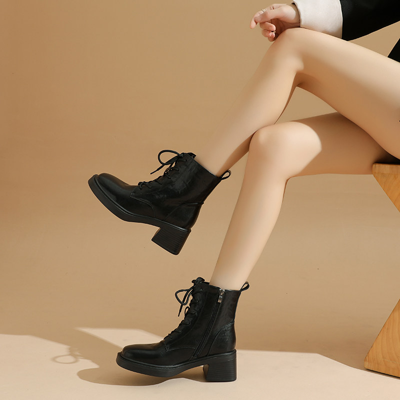 品牌真软皮惠州马丁靴女2025新款秋冬黑色爆款短靴英伦风平底靴子