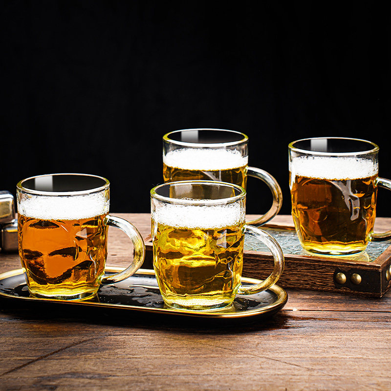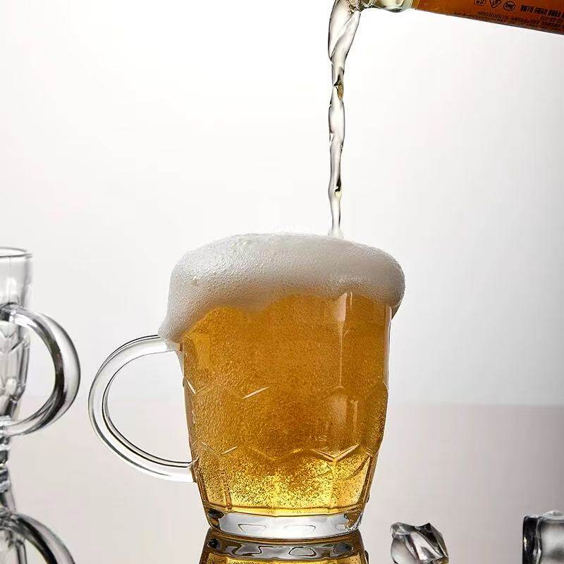玻璃杯啤酒杯扎啤杯带把手家用喝水杯子套装网红商用大容量菠萝杯