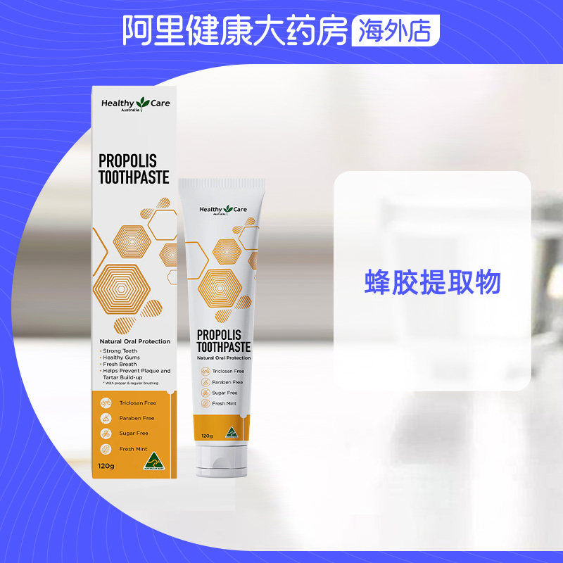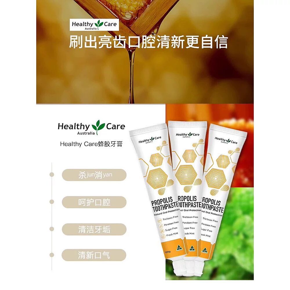 HealthyCare澳洲进口蜂胶牙膏无氟美白去及黄去口臭护口腔120g/支