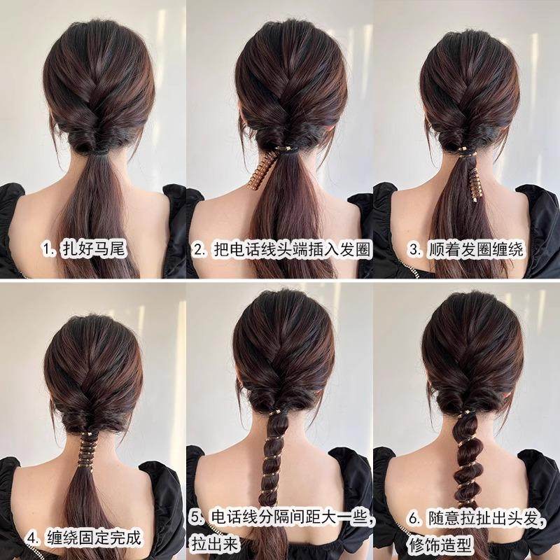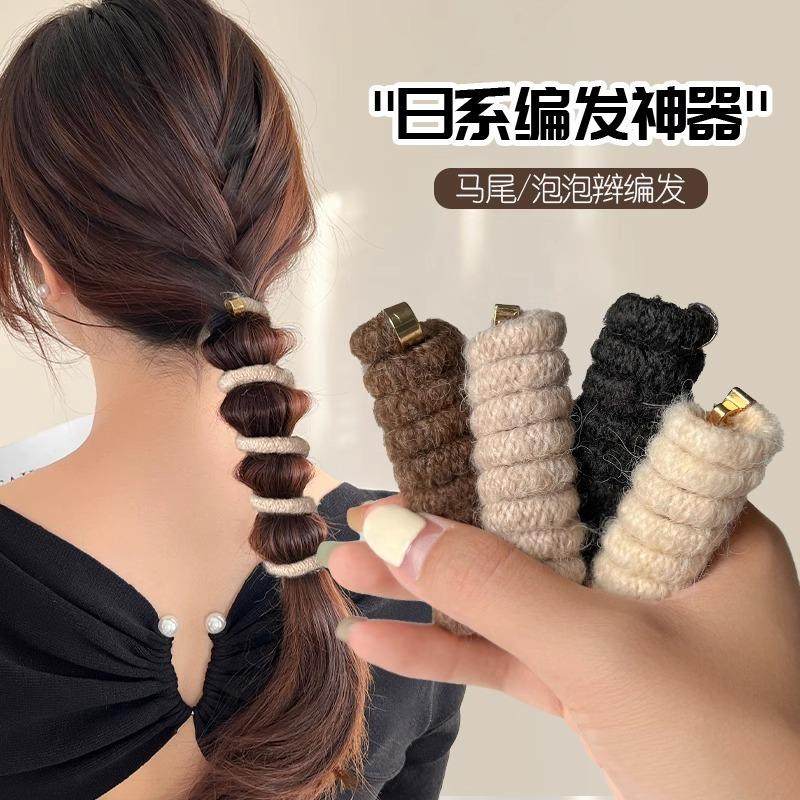 秋冬直条毛线电话线发圈女高马尾神器气质泡泡辫编发头绳耐用皮筋