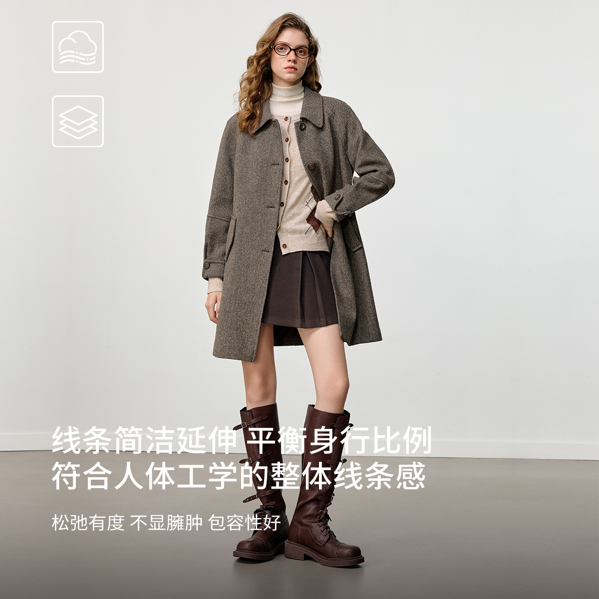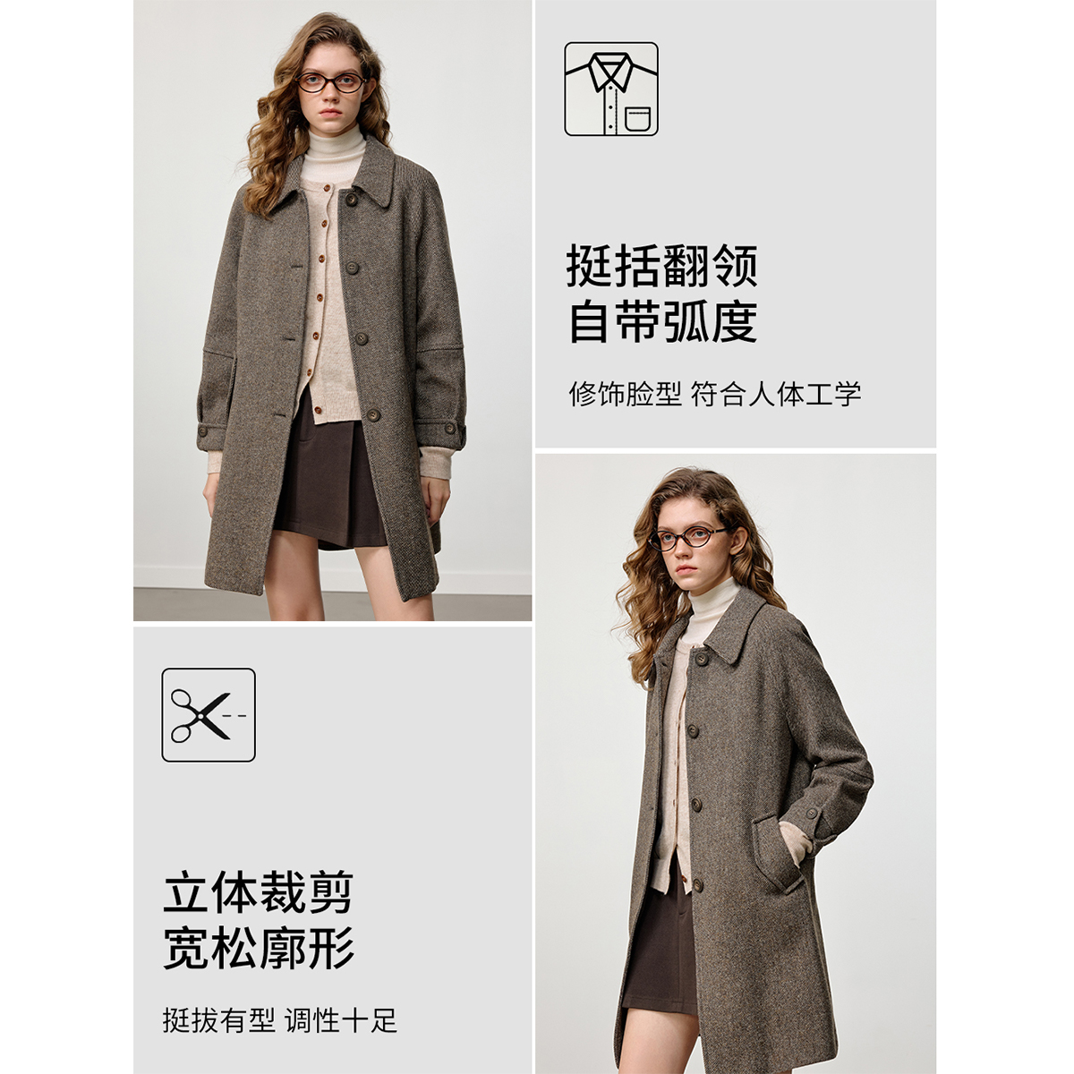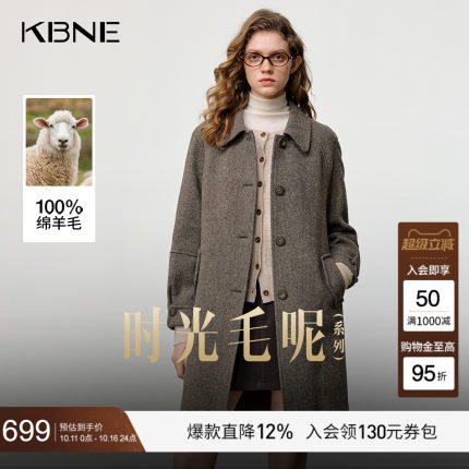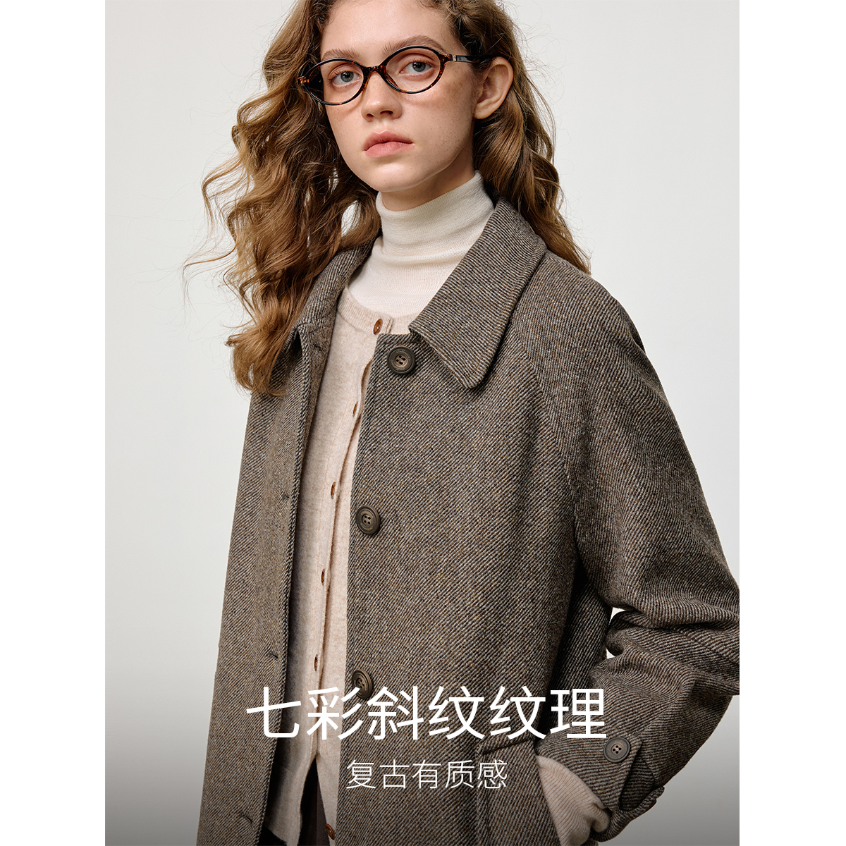 [100%绵羊毛]KBNE七彩斜纹中长款毛呢大衣女2025冬季新款毛呢外套