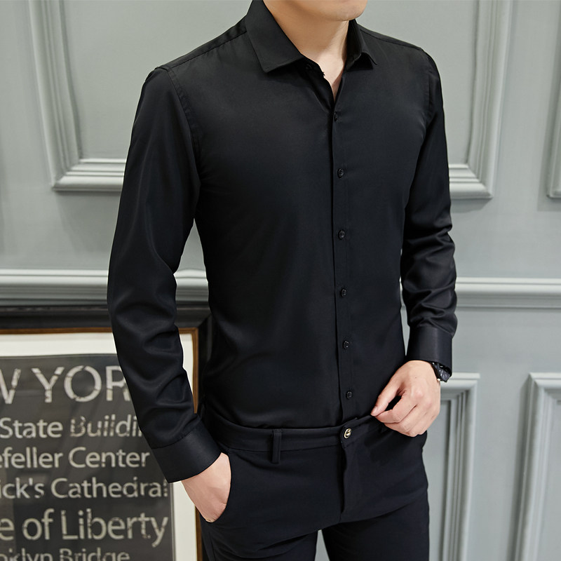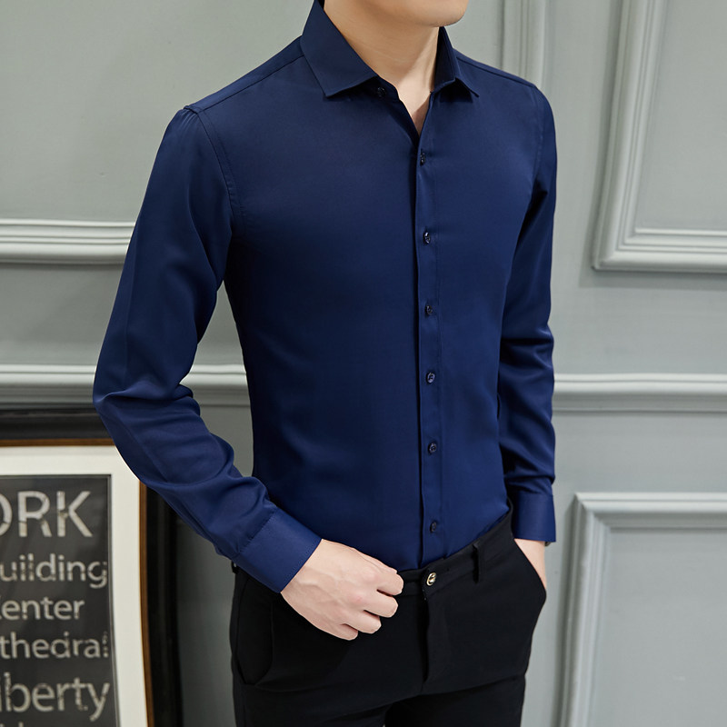 2020春季新款男士长袖白色衬衫商务休闲修身纯色工装职业工作衬衣