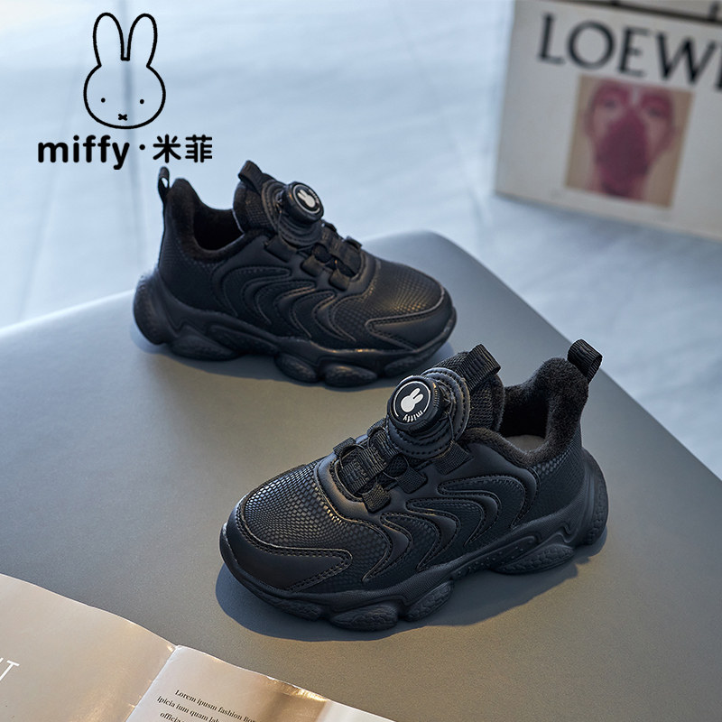 Miffy米菲女童鞋2025秋冬新款黑色儿童运动鞋女童加绒保暖休闲鞋