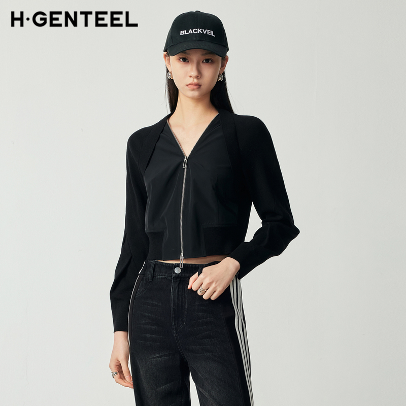 H·GENTEEL荷高女装针梭拼接时尚V领短外套GCD33520530