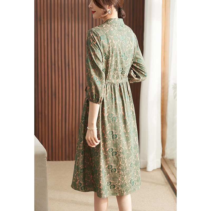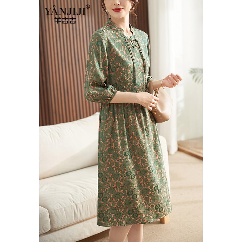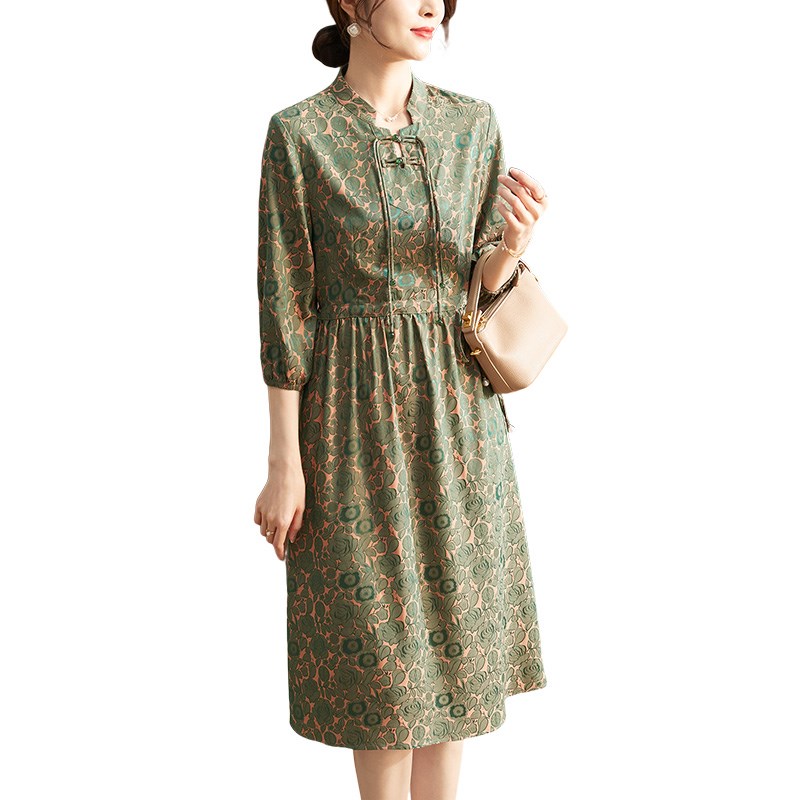 妈妈夏装连衣裙洋气复古雪纺裙2024新款中老年女士系带阔太太长裙