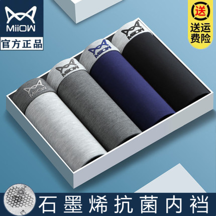 猫人正品男士内裤莫代尔纯棉石墨烯抗菌透气平角裤男生款四角短裤