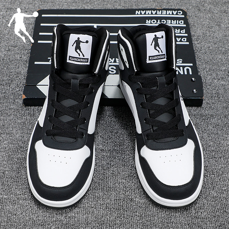 乔丹男鞋高帮板鞋2026春季新款黑色皮面运动鞋官方正品休闲鞋子潮