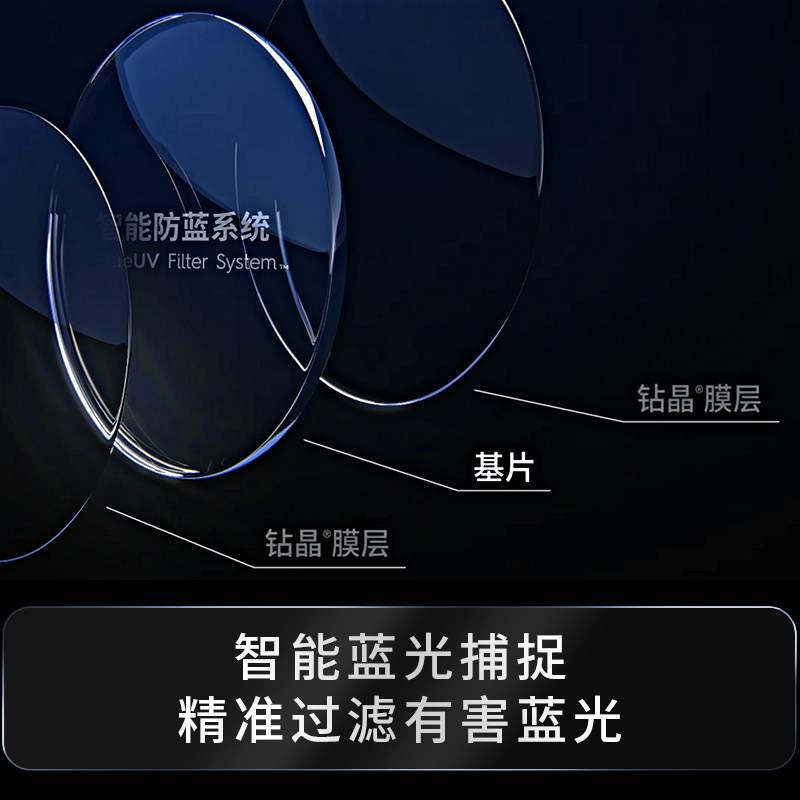 依视路近视眼镜片钻晶膜御X4防蓝光1.60非球面2片新品赠镜宴钛框