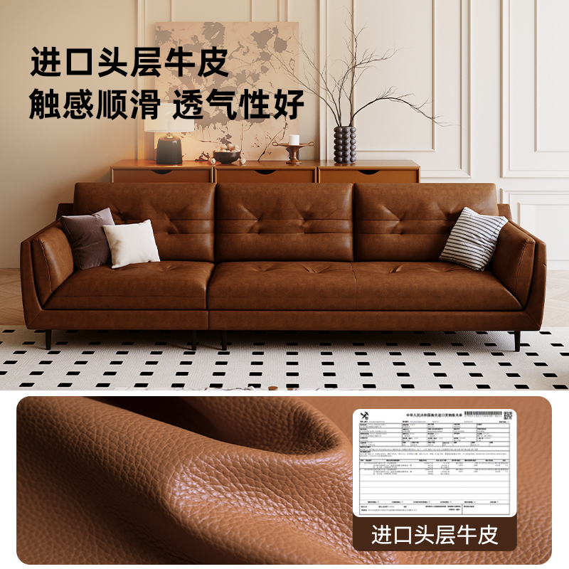 慕思集团旗下艾慕沙发真皮头层牛皮客厅意式简约直排中古复古风