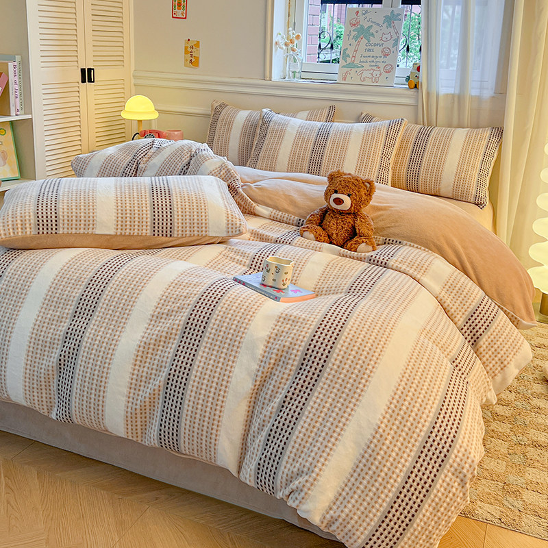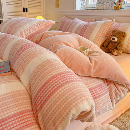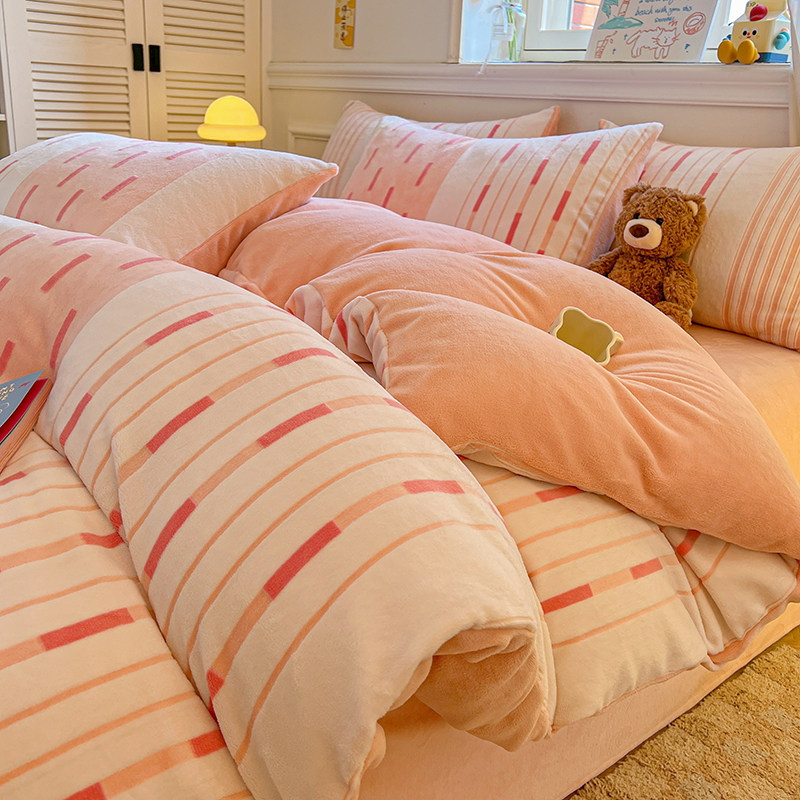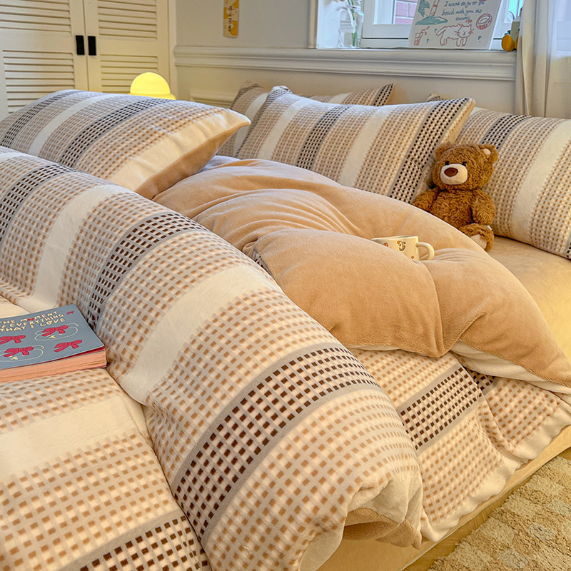 冬加厚牛奶绒床上四件套保暖床单被套床笠双面珊瑚绒法兰绒三件套