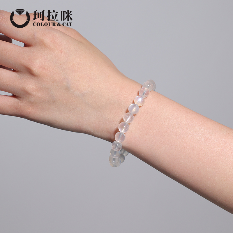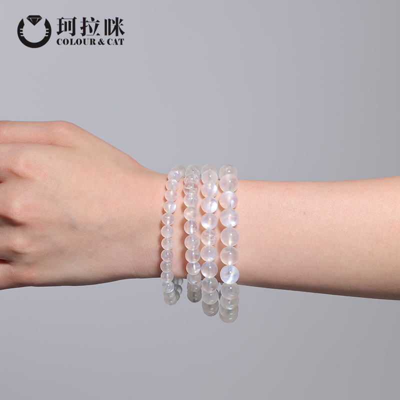 珂拉咪 天然蓝月光石手链女款 水晶手串颗颗蓝光冰种体 精品款
