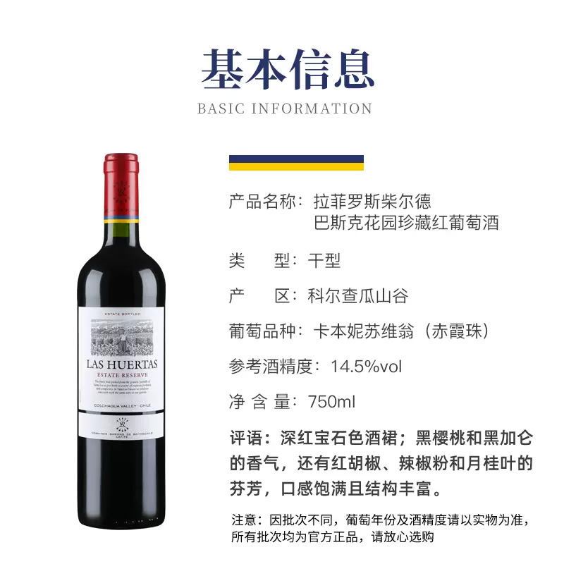 拉菲花园珍藏赤霞珠红酒整箱进口干红巴斯克葡萄酒木箱礼盒装