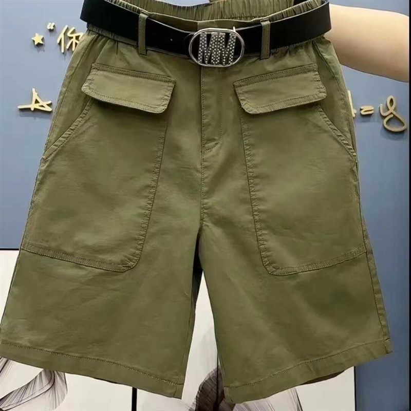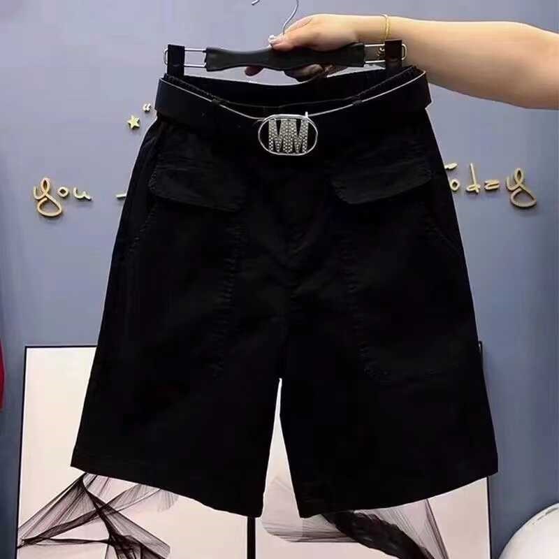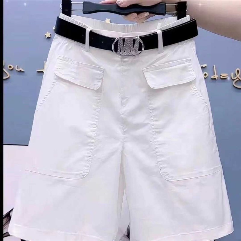 时尚遮肉休闲短裤女五分裤高腰显瘦百搭热裤外穿纯色纯棉布休闲裤
