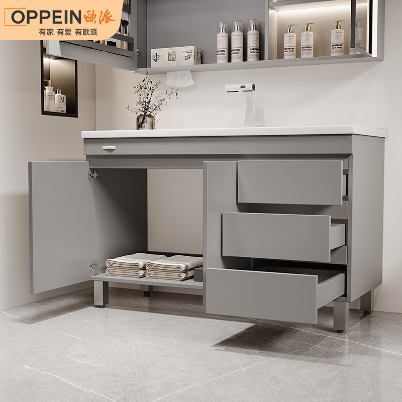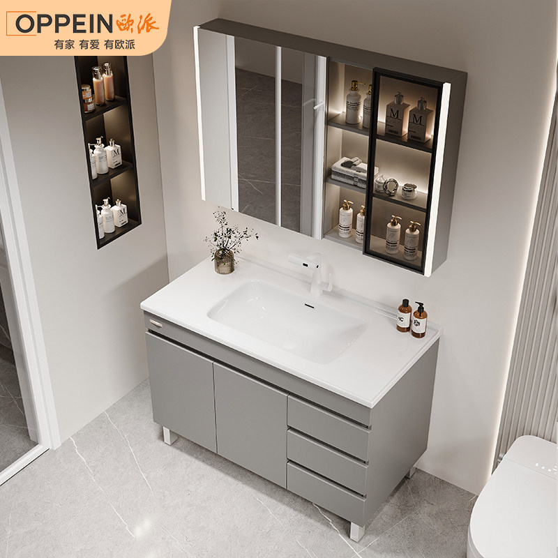 欧派落地式浴室柜现代简约卫生间落地式洗脸盆柜陶瓷一体盆洗漱台