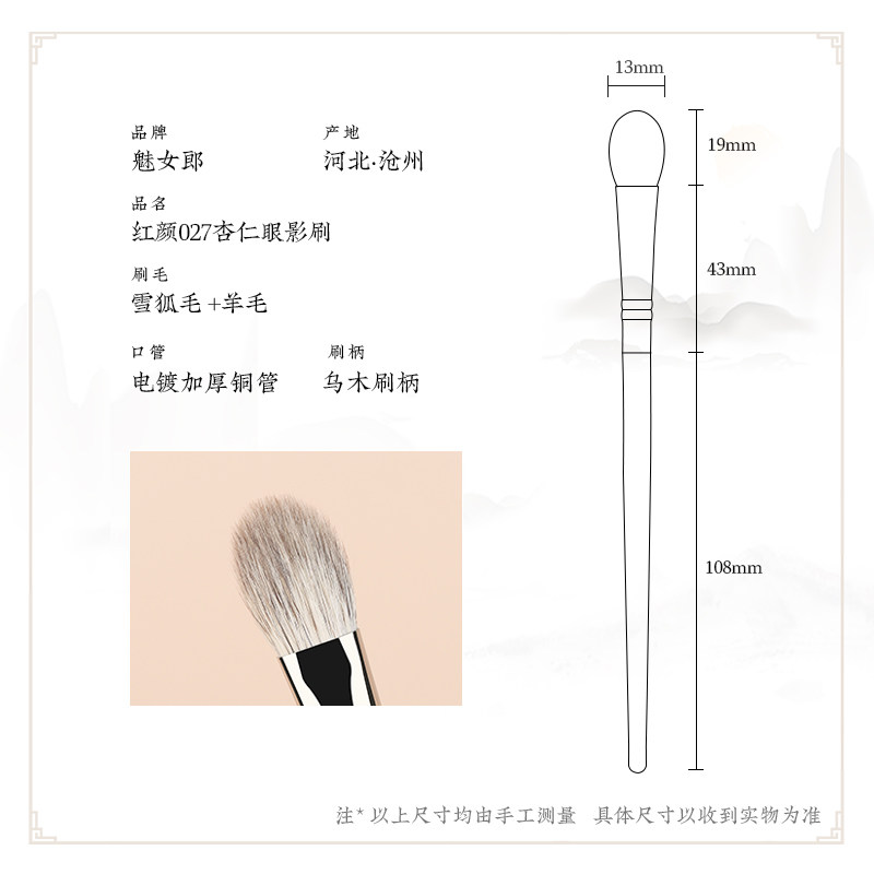 魅女郎红颜027杏仁眼影刷动物毛大号眼部铺色晕染刷一支装化妆刷