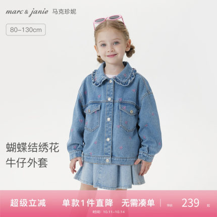 马克珍妮女童蝴蝶结绣花牛仔外套