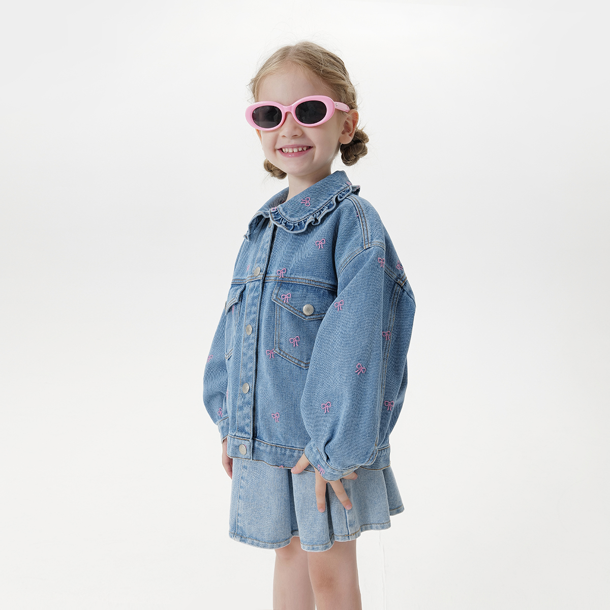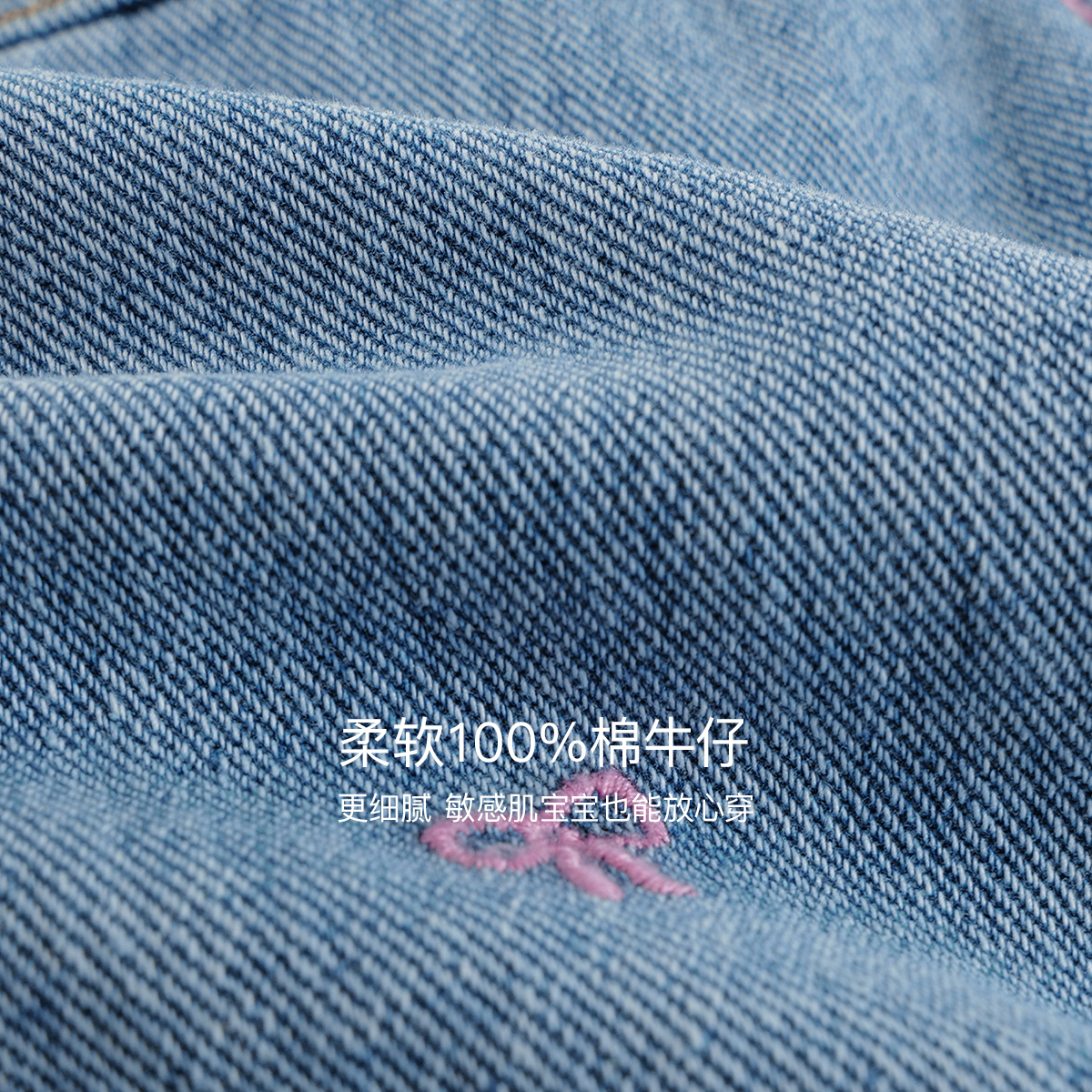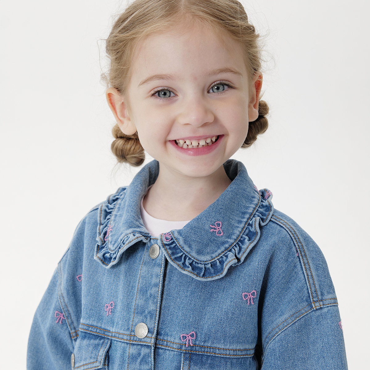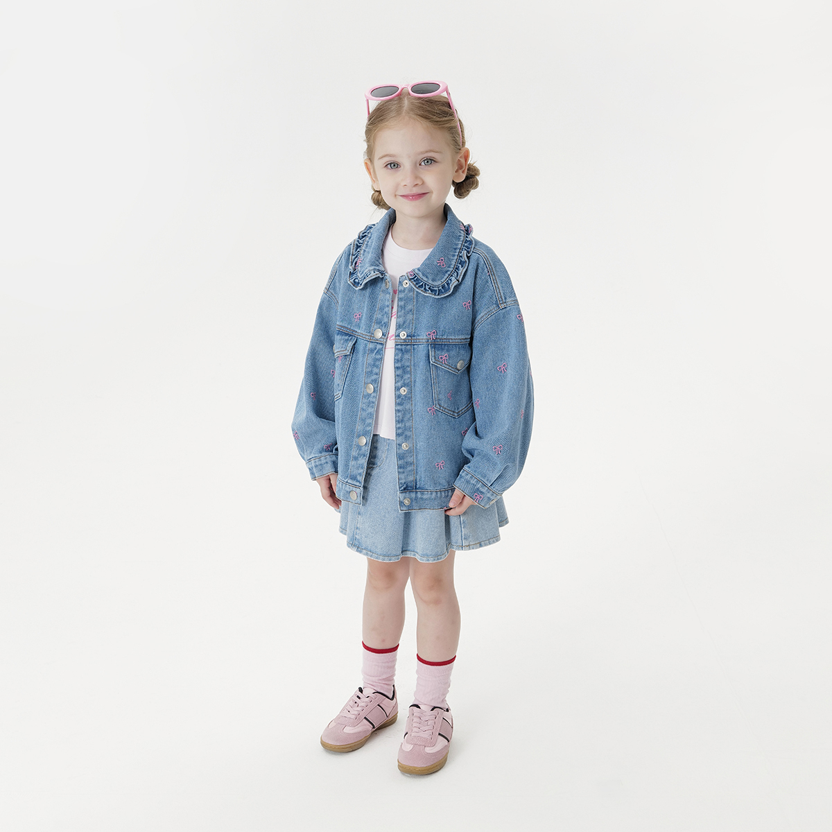 马克珍妮女童蝴蝶结绣花牛仔外套宝宝夹克上衣2025秋装新品551522