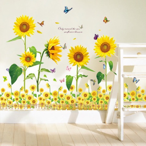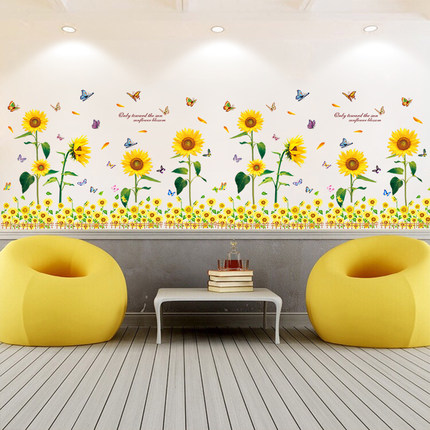 向日葵田园风墙贴纸温馨卧室房间墙纸贴画客厅电视沙发背景墙装饰