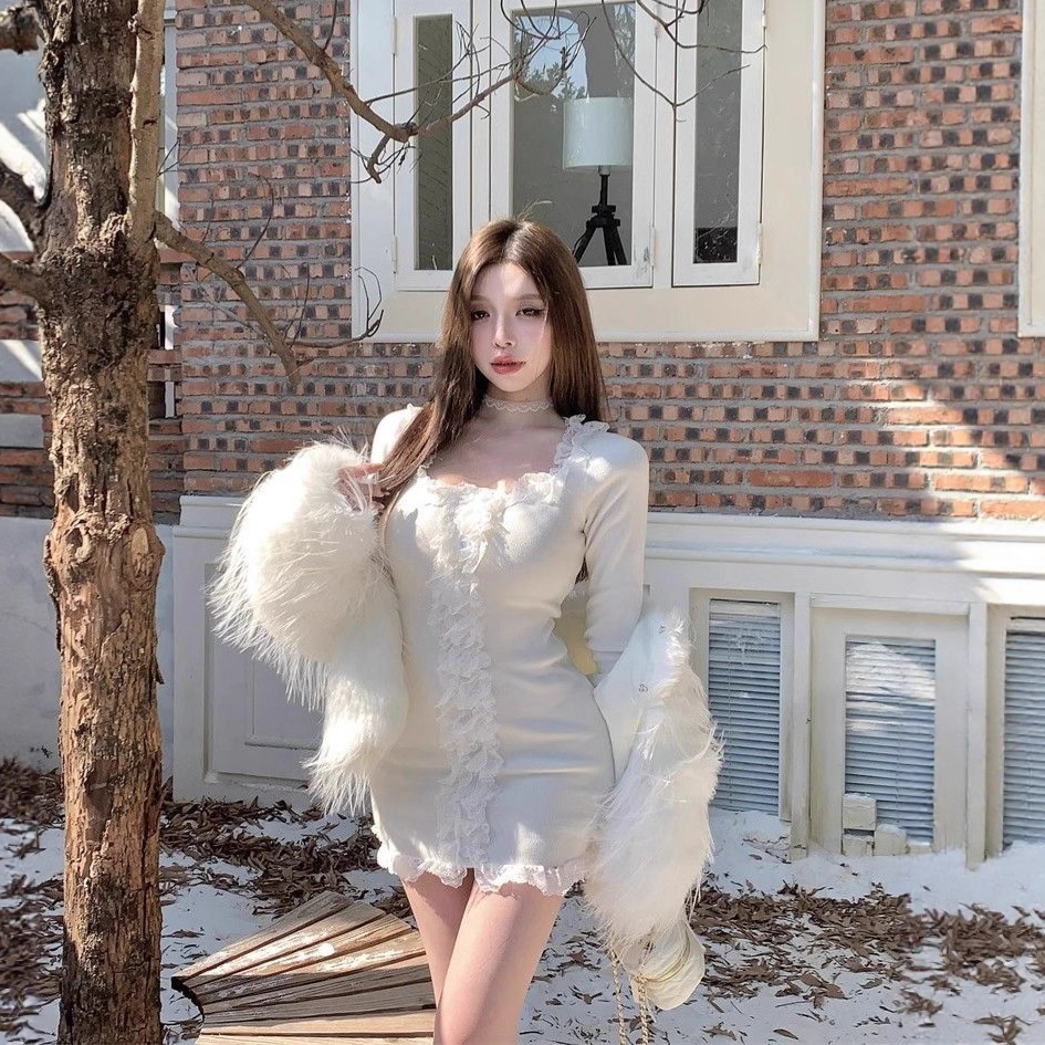 纯欲风氛围感内搭打底包臀裙女春秋新款修身显瘦蕾丝花边连衣裙子