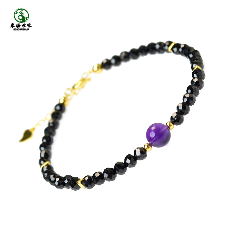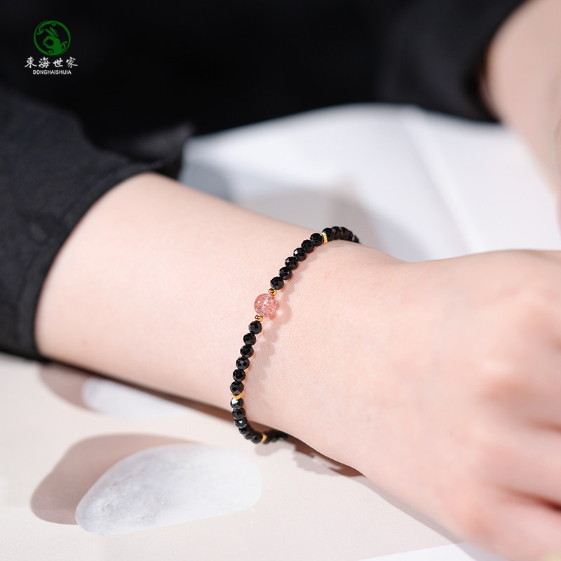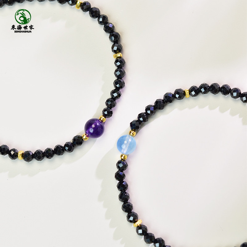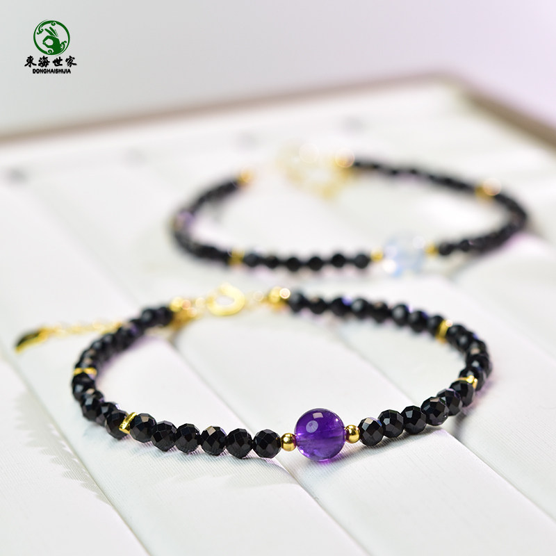 黑尖晶手串女东海玛瑙玉髓紫黄水晶黑曜石草莓晶海蓝宝石珍珠手链