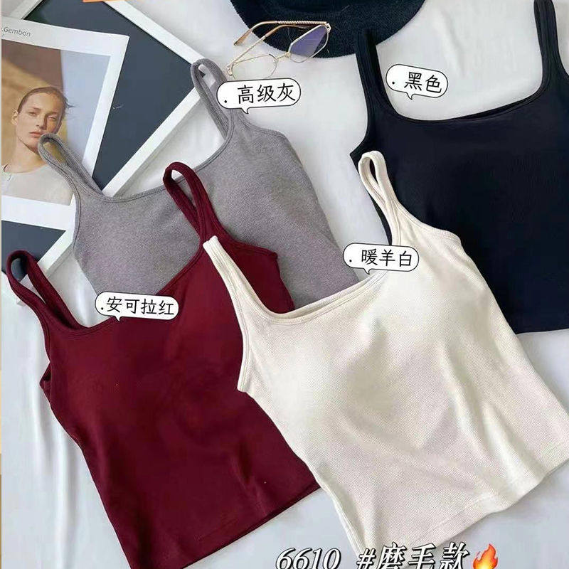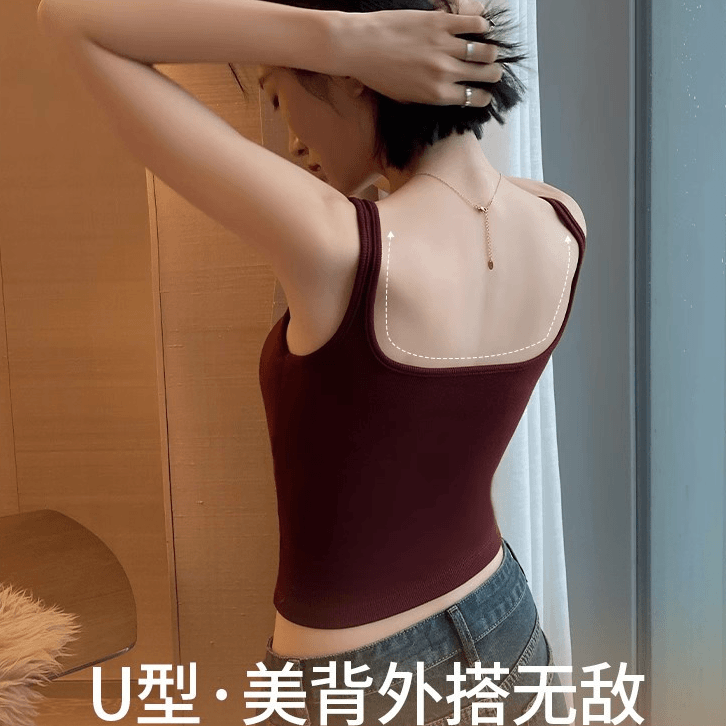 磨毛保暖方领吊带背心女学生带胸垫秋冬内搭U型美背遮副乳外穿衣