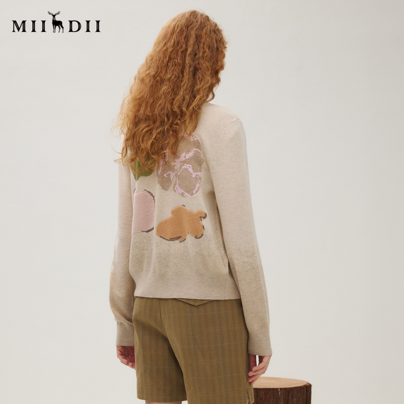 谜底针织开衫女25秋俏皮软语复古文艺后背提花保暖毛衣253MZ1372