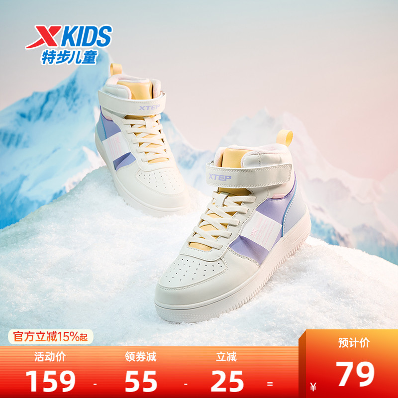 特步童鞋男女童棉鞋秋冬季儿童款棉鞋舒适百搭时尚中大童防滑棉鞋