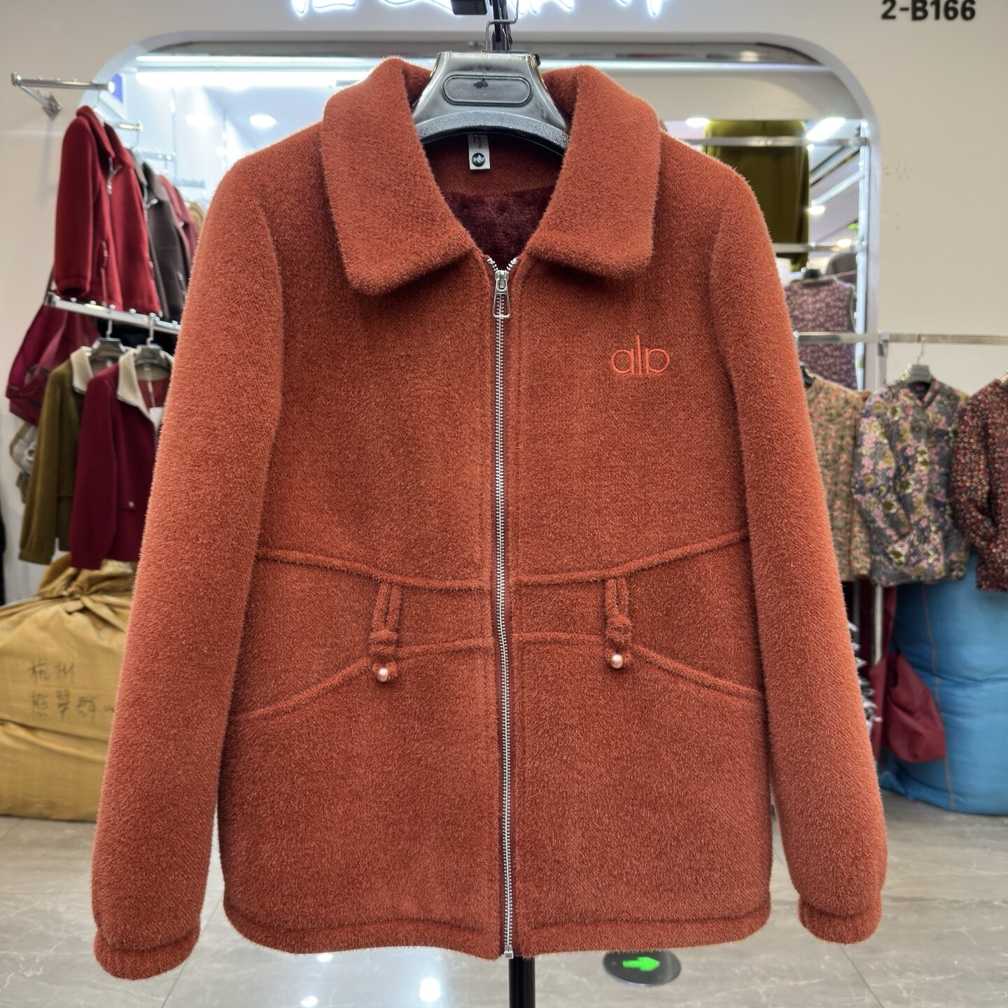 年轻妈妈装翻领加厚毛呢外套冬季新款时尚减龄中老年保暖休闲夹克