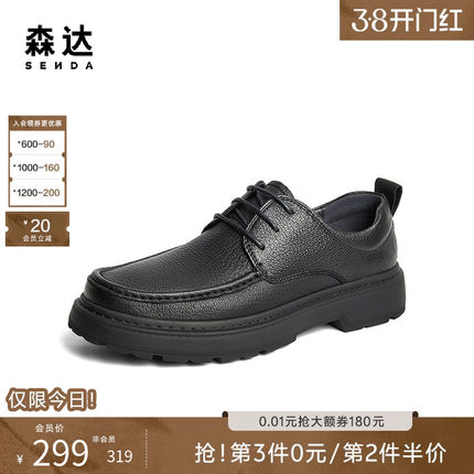 森达休闲皮鞋男鞋秋冬商场同款简约舒适软底通勤系带皮鞋1TF01DM4