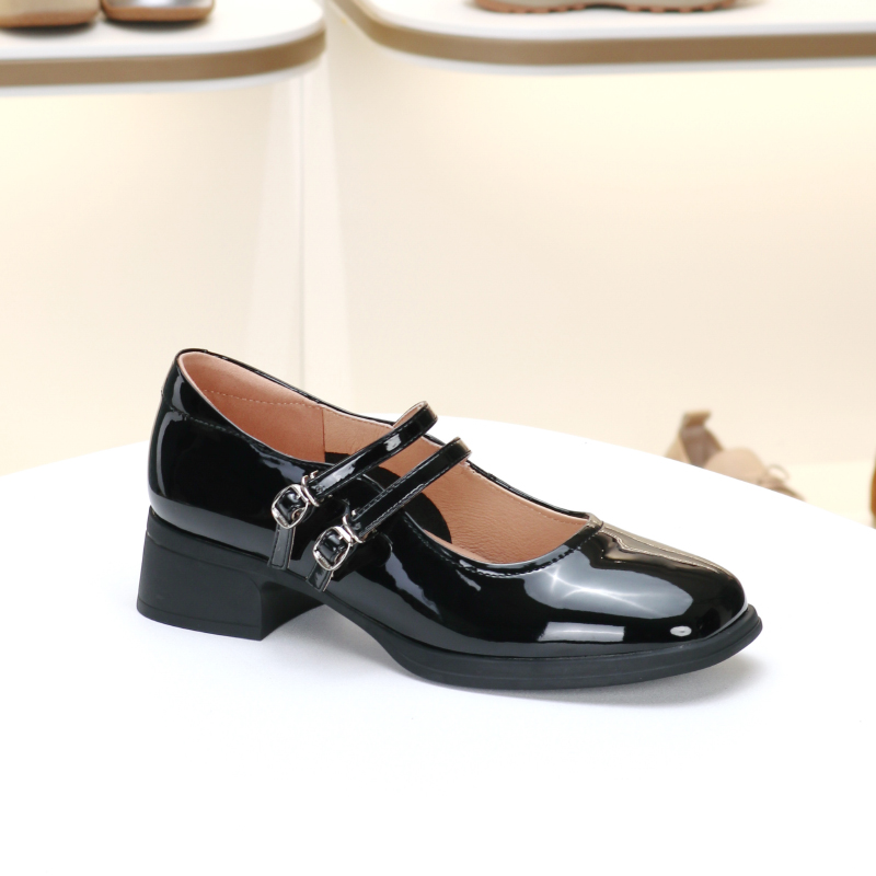 百丽粗跟玛丽珍鞋舒适小皮鞋