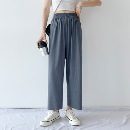 大码胖mm夏装减龄冰丝显瘦遮肚直筒宽松九分梨型身材阔腿裤子女