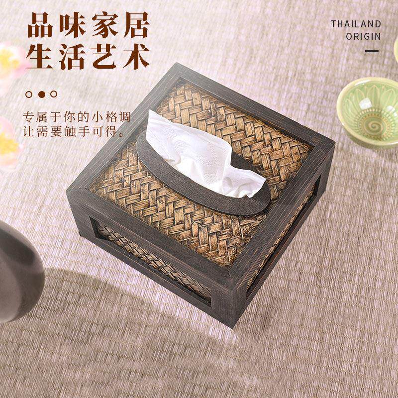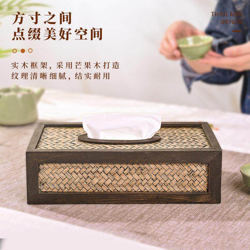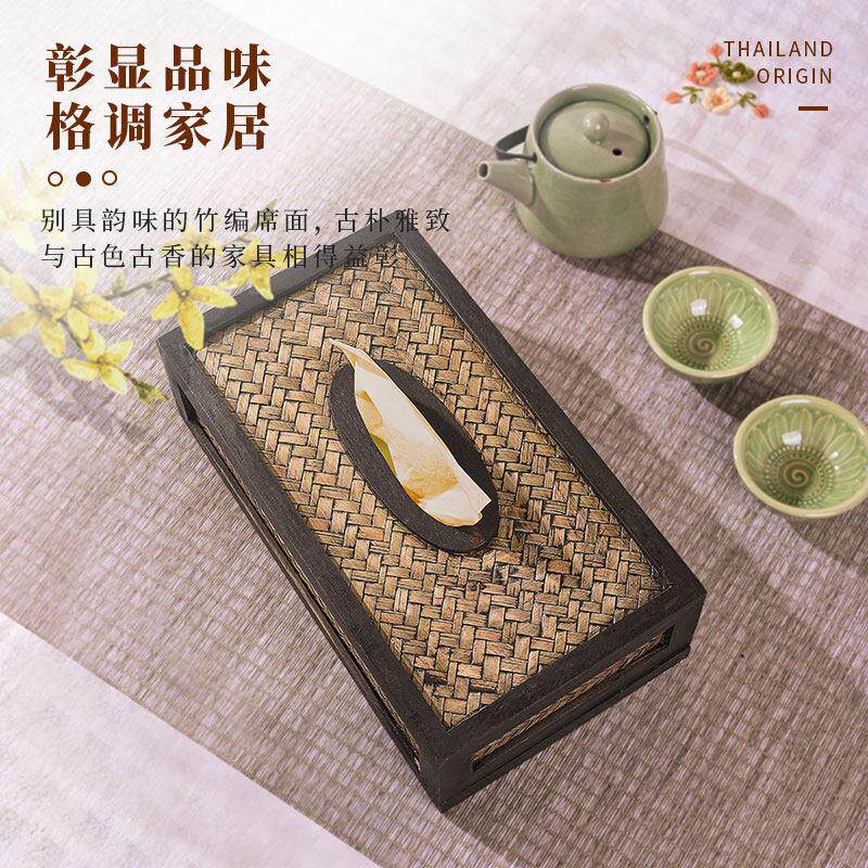 泰古牛牛纸巾盒客厅创意新中式竹编家用实木卫生纸盒覆古藤编抽取