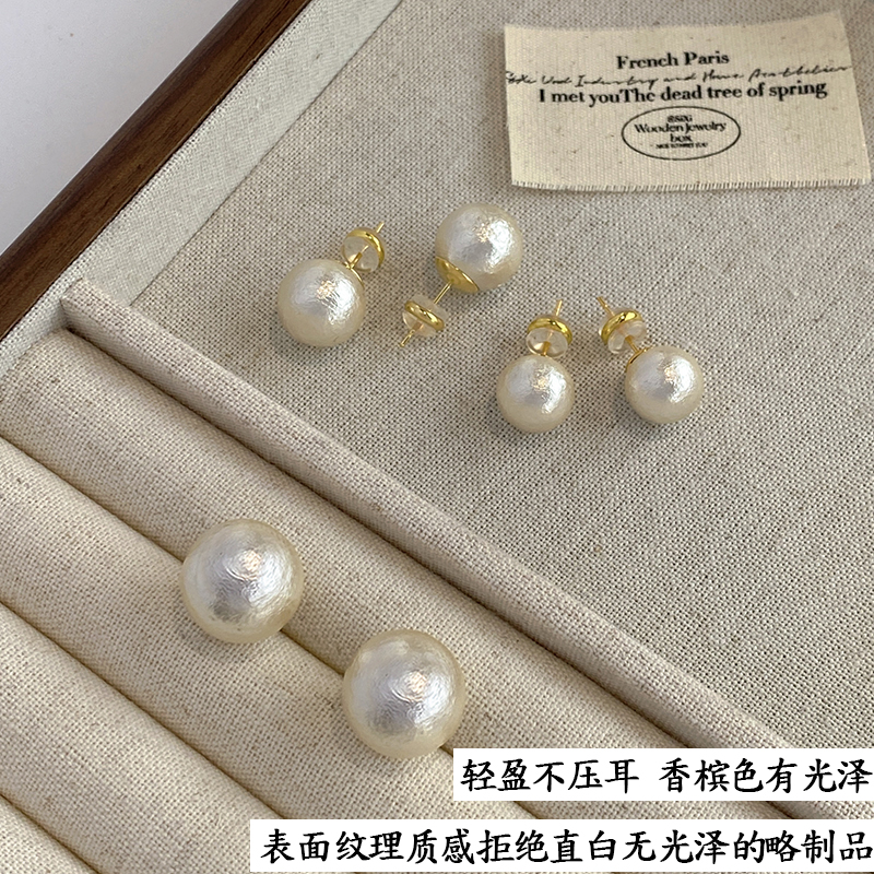 博主mona同款棉花珍珠耳钉女S925纯银针简约气质耳环高级感耳饰品