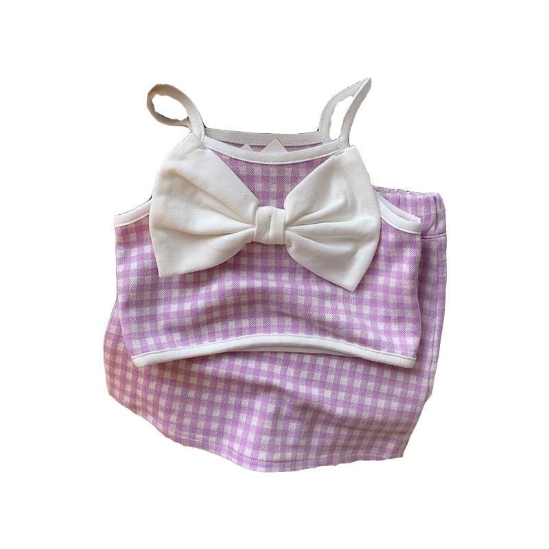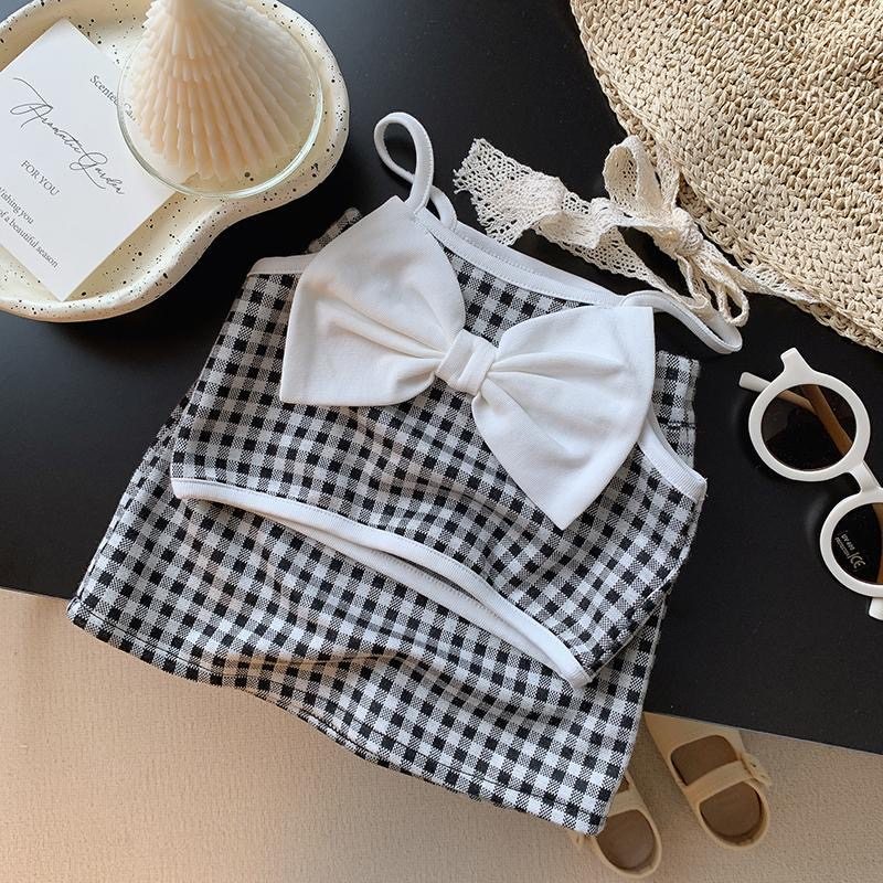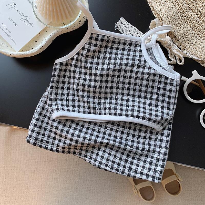 女童2025新款夏装女宝宝休闲百搭套装小童洋气时尚格子吊带两件套