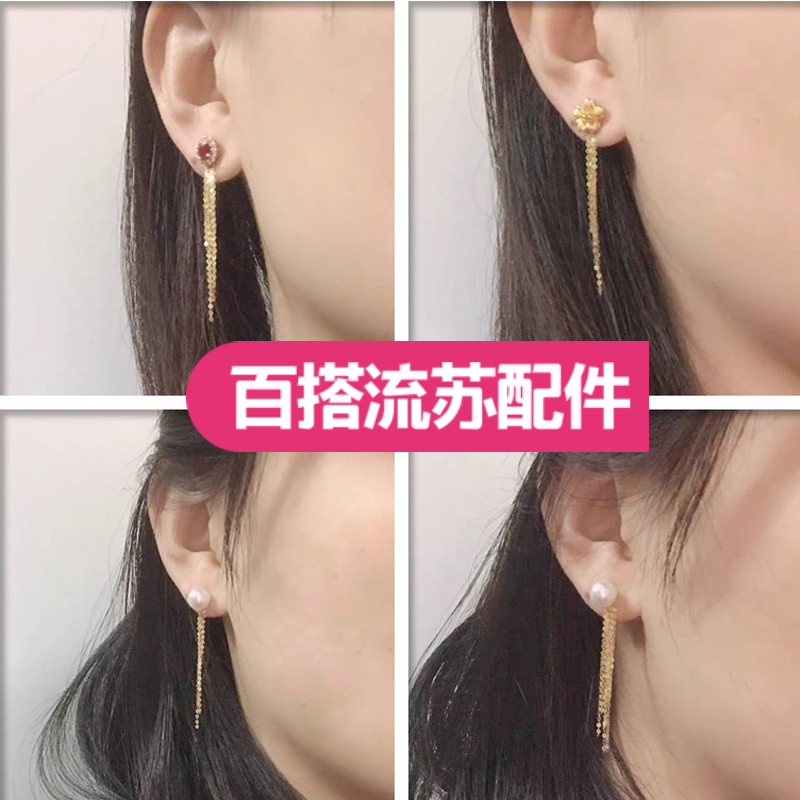 18K金流苏耳线长款diy配件材料网红耳坠耳环耳钉珍珠耳线流苏耳饰