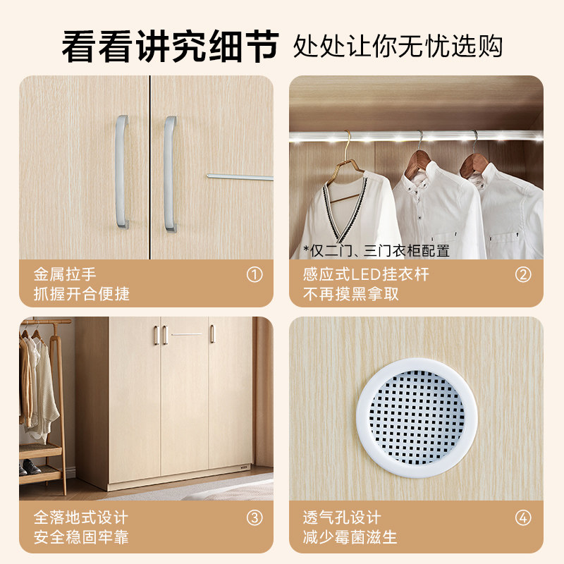 全友家居现代简约衣柜卧室家用两门三门衣橱储物收纳柜子
