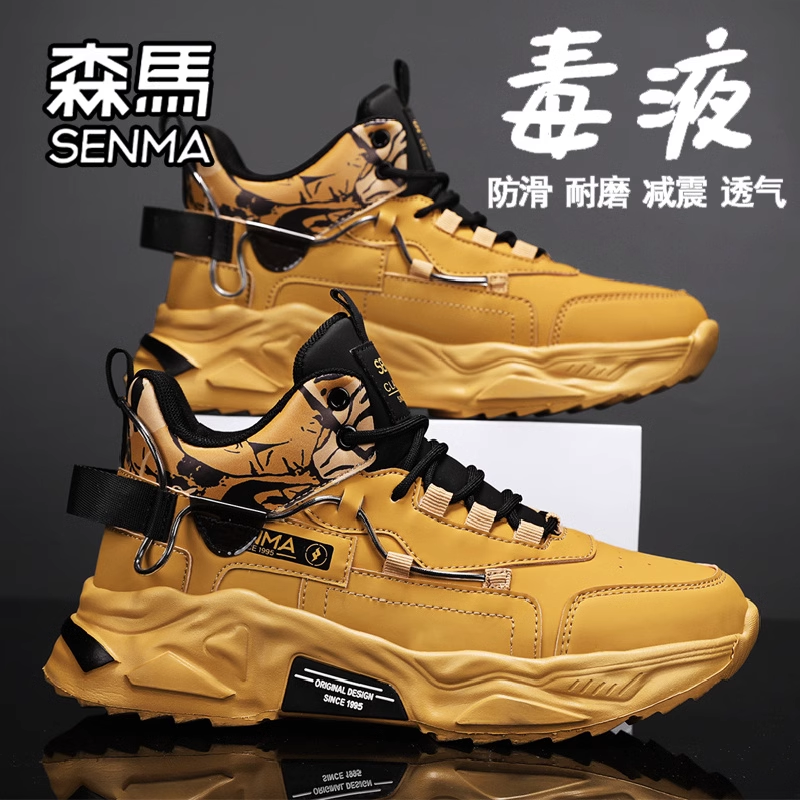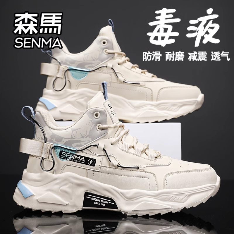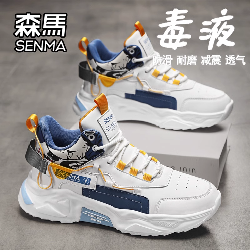 森马高帮男鞋秋季潮牌高级感运动休闲跑步厚底内增高小白老爹潮鞋