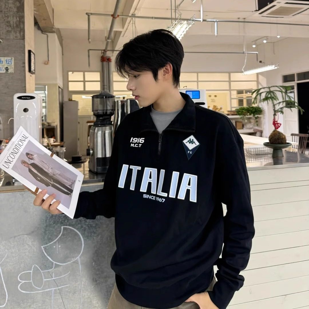 Kappa卡帕背靠背秋季新款运动卫衣男休闲上衣针织半拉链套头衫女